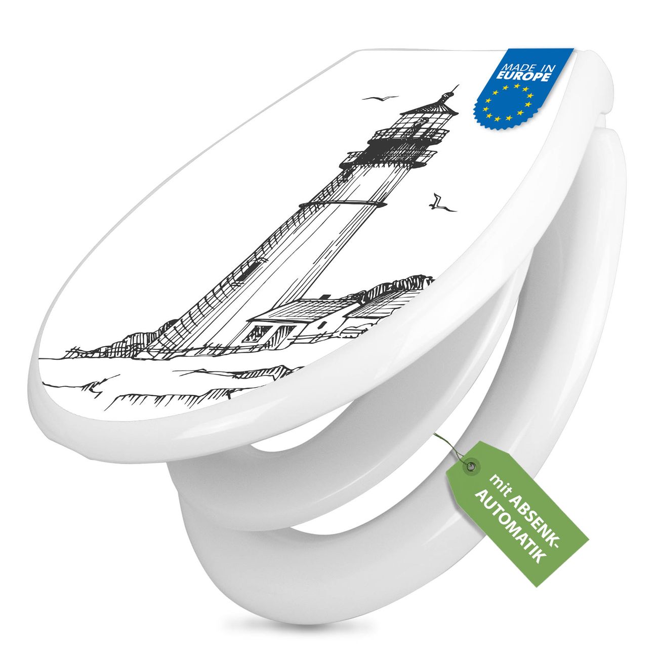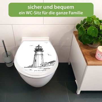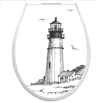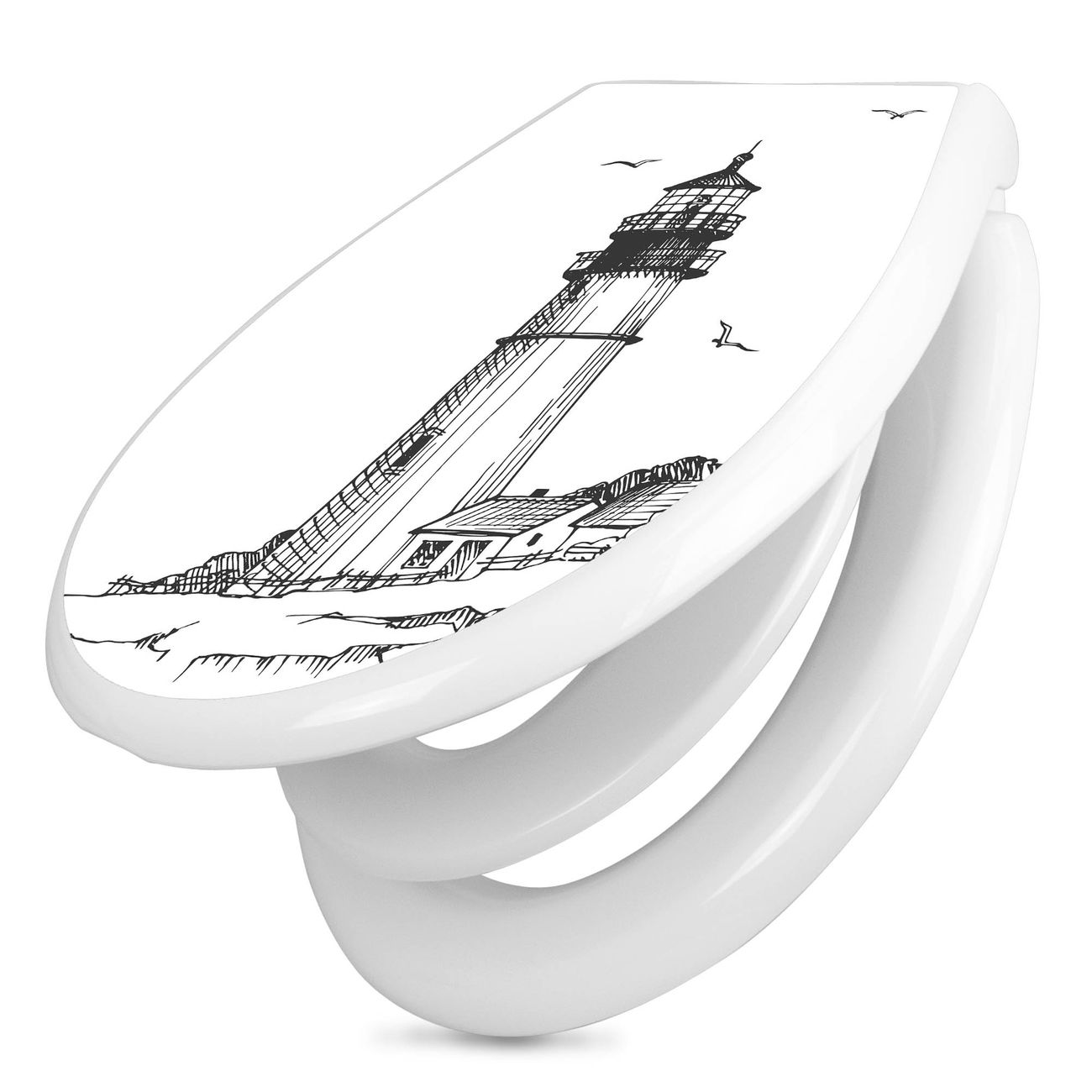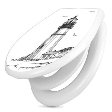 Toilettendeckel weiß mit Absenkautomatik Motiv Leuchtturm 9