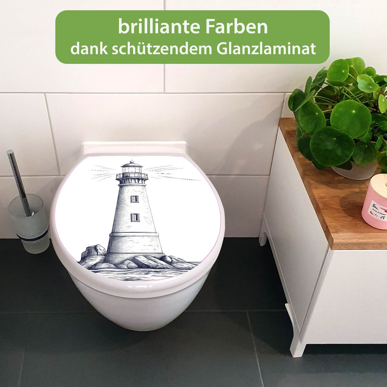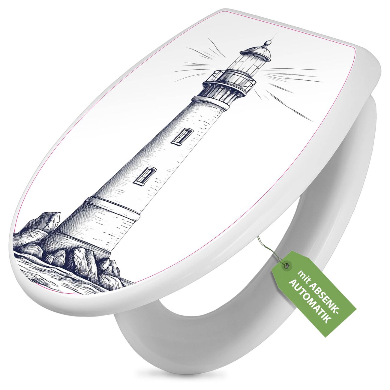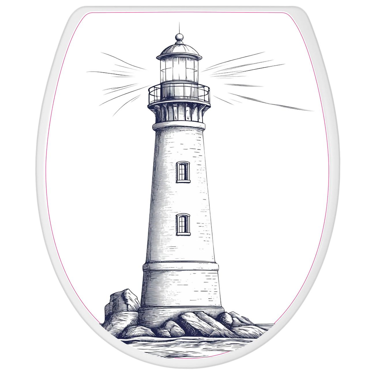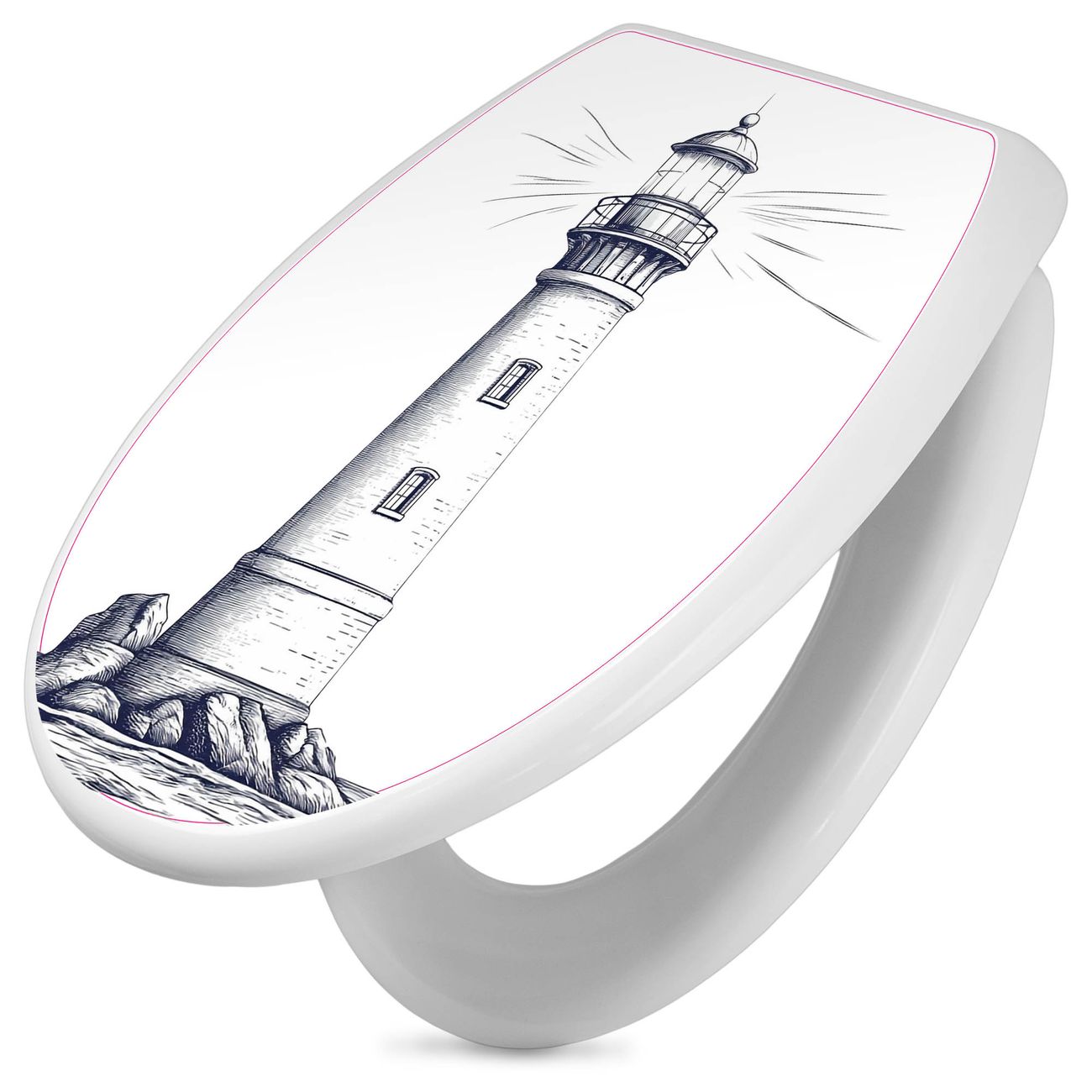 Toilettendeckel weiß mit Absenkautomatik Motiv Leuchtturm-Skizze