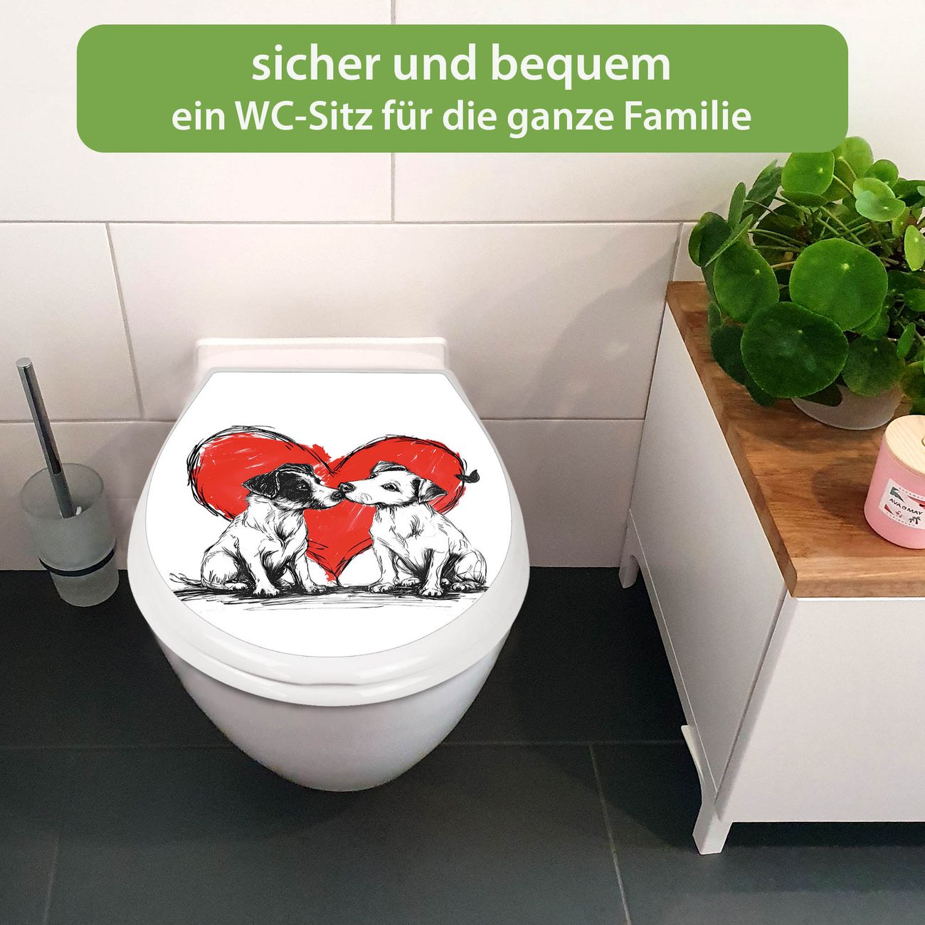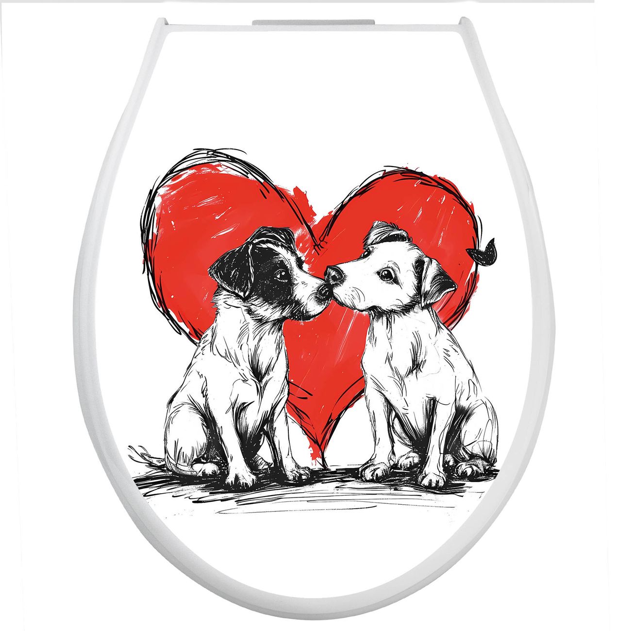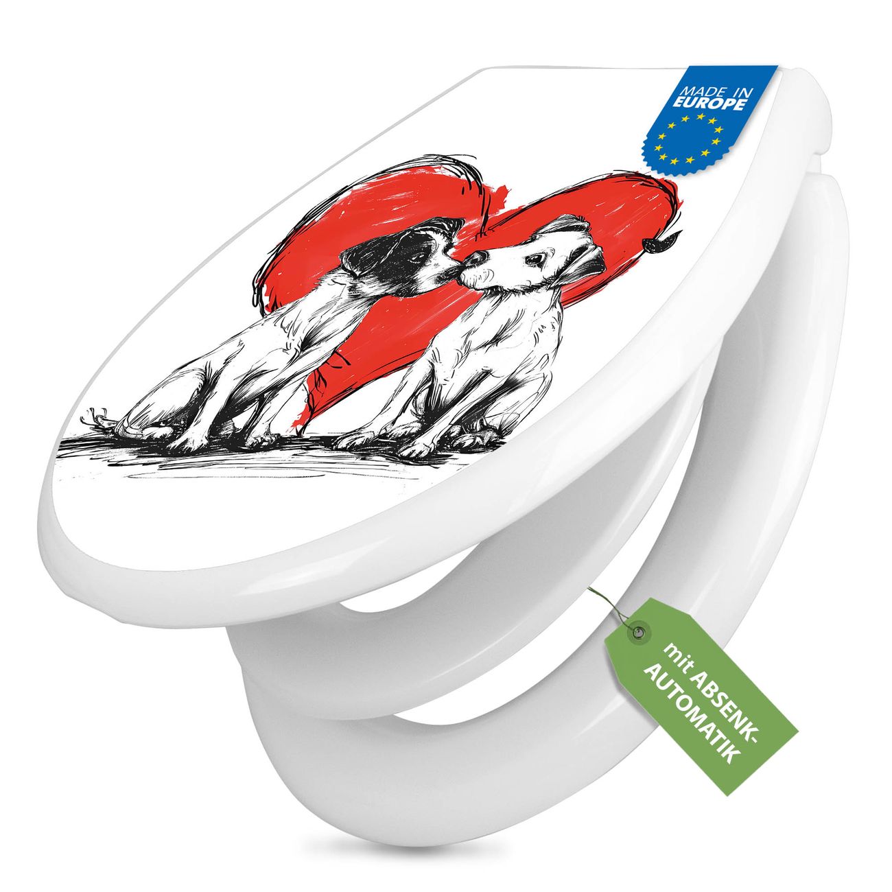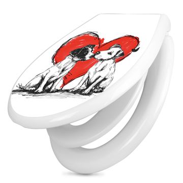 Toilettendeckel weiß mit Absenkautomatik Motiv Liebende Hunde