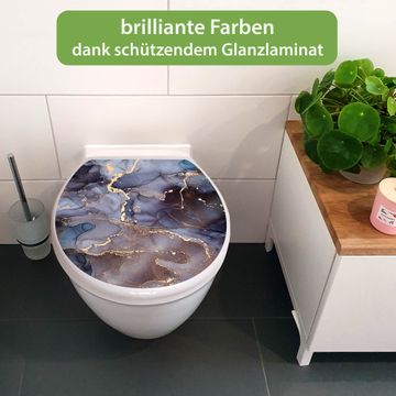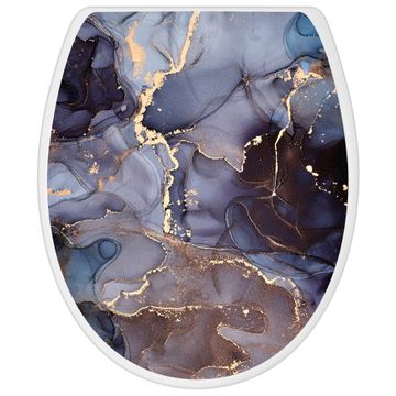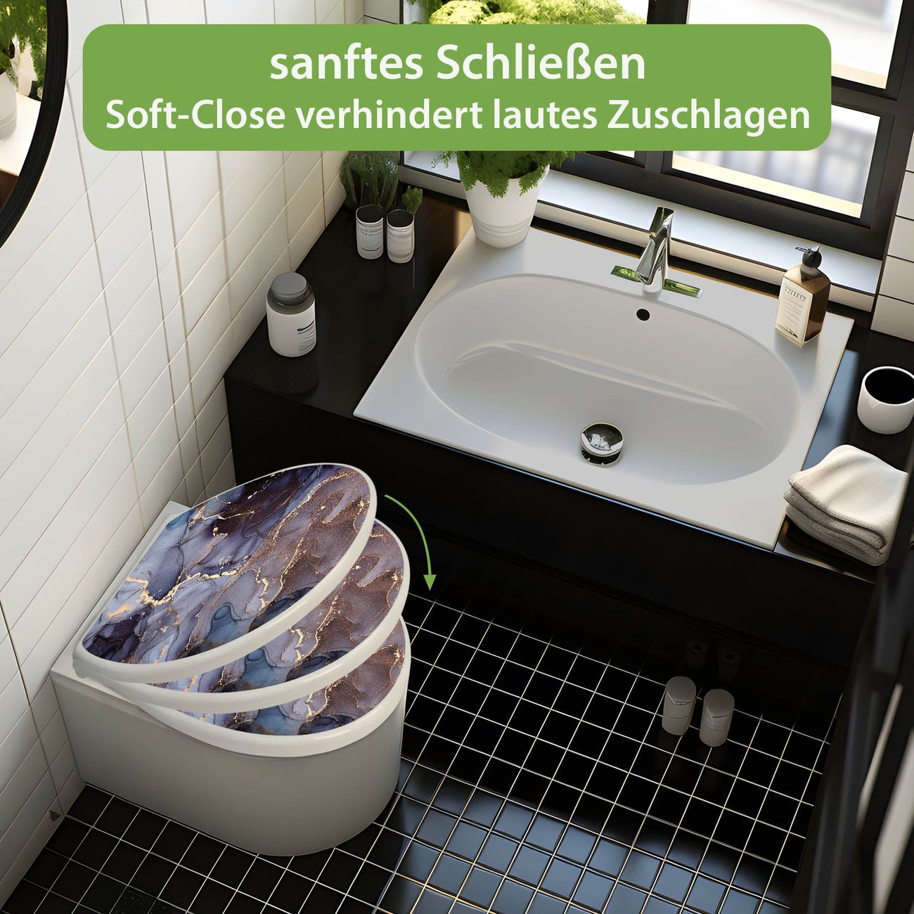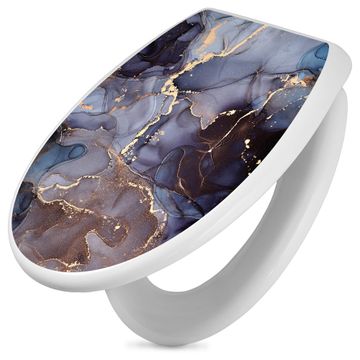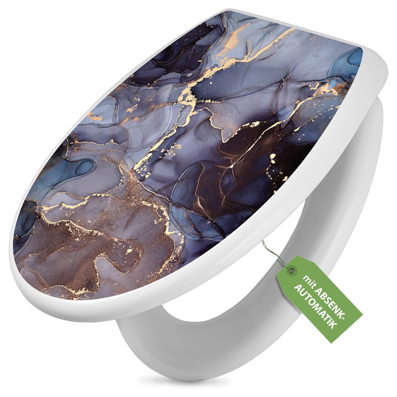 Toilettendeckel weiß mit Absenkautomatik Motiv Lila Marmor mit Gold 1