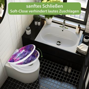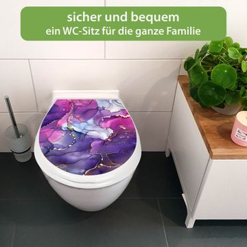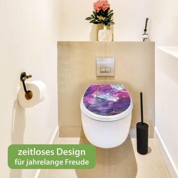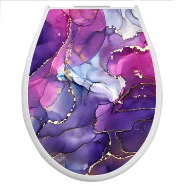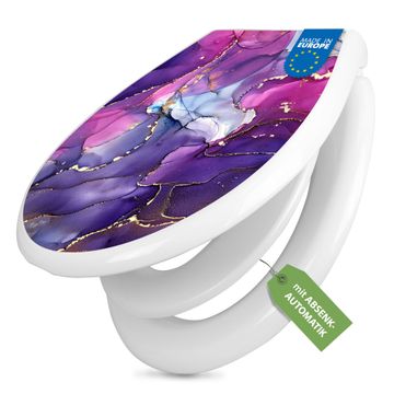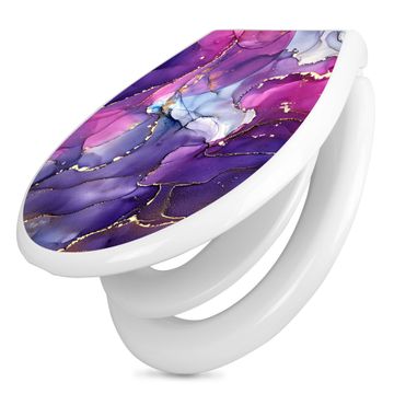 Toilettendeckel weiß mit Absenkautomatik Motiv Lila Marmor mit Gold 2