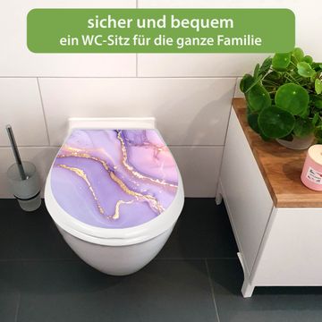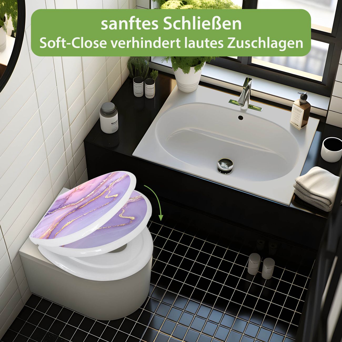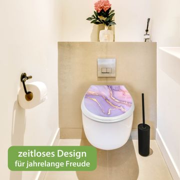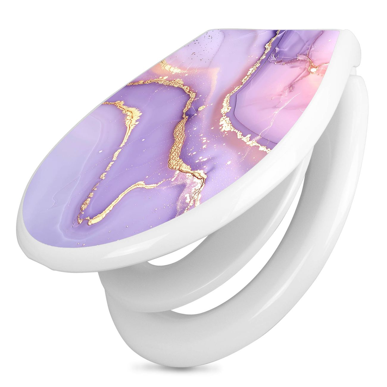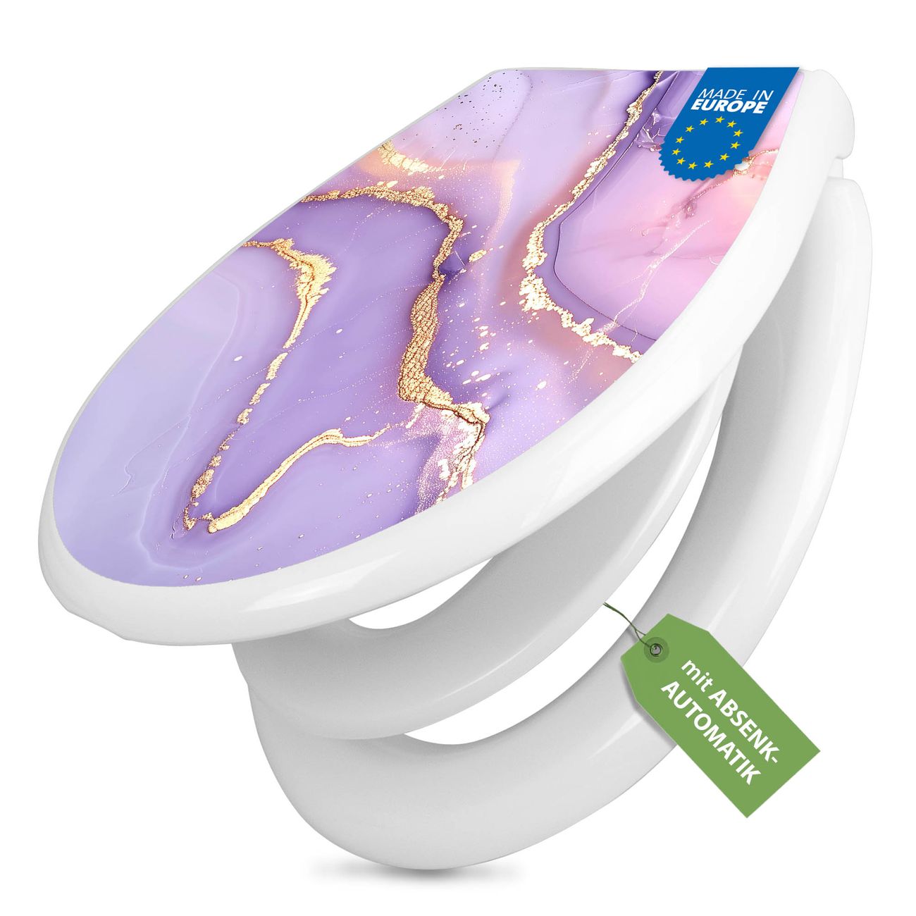 Toilettendeckel weiß mit Absenkautomatik Motiv Lila Marmor mit Gold 3