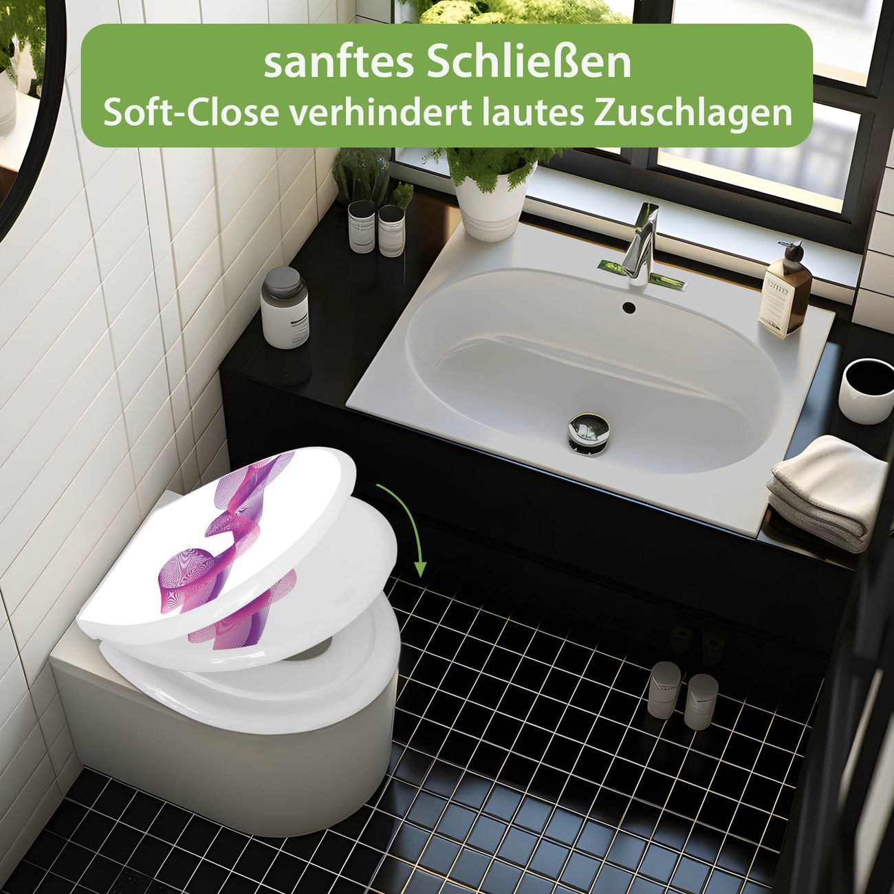 Toilettendeckel weiß mit Absenkautomatik Motiv Lila Schleier