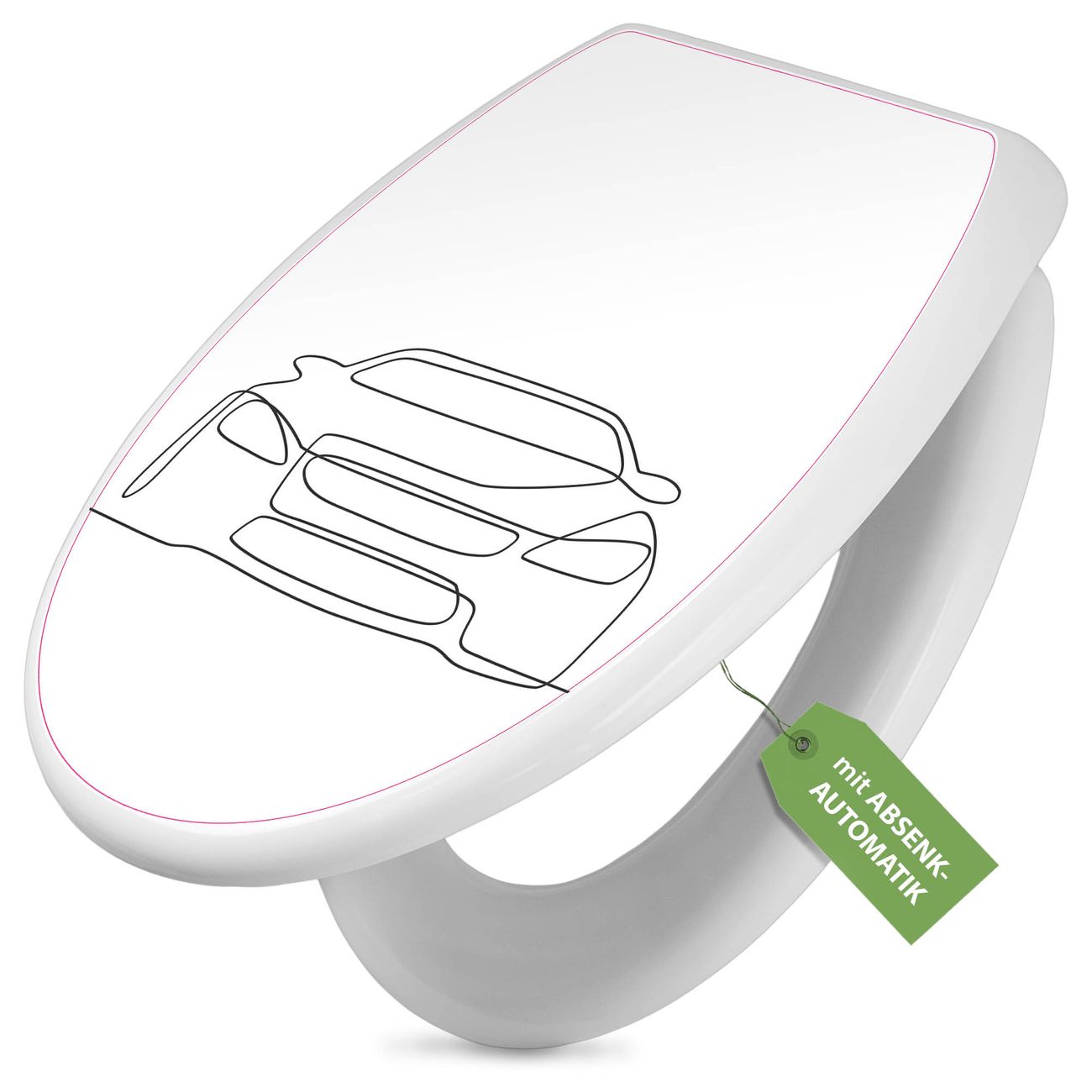 Toilettendeckel weiß mit Absenkautomatik Motiv Lineart Auto