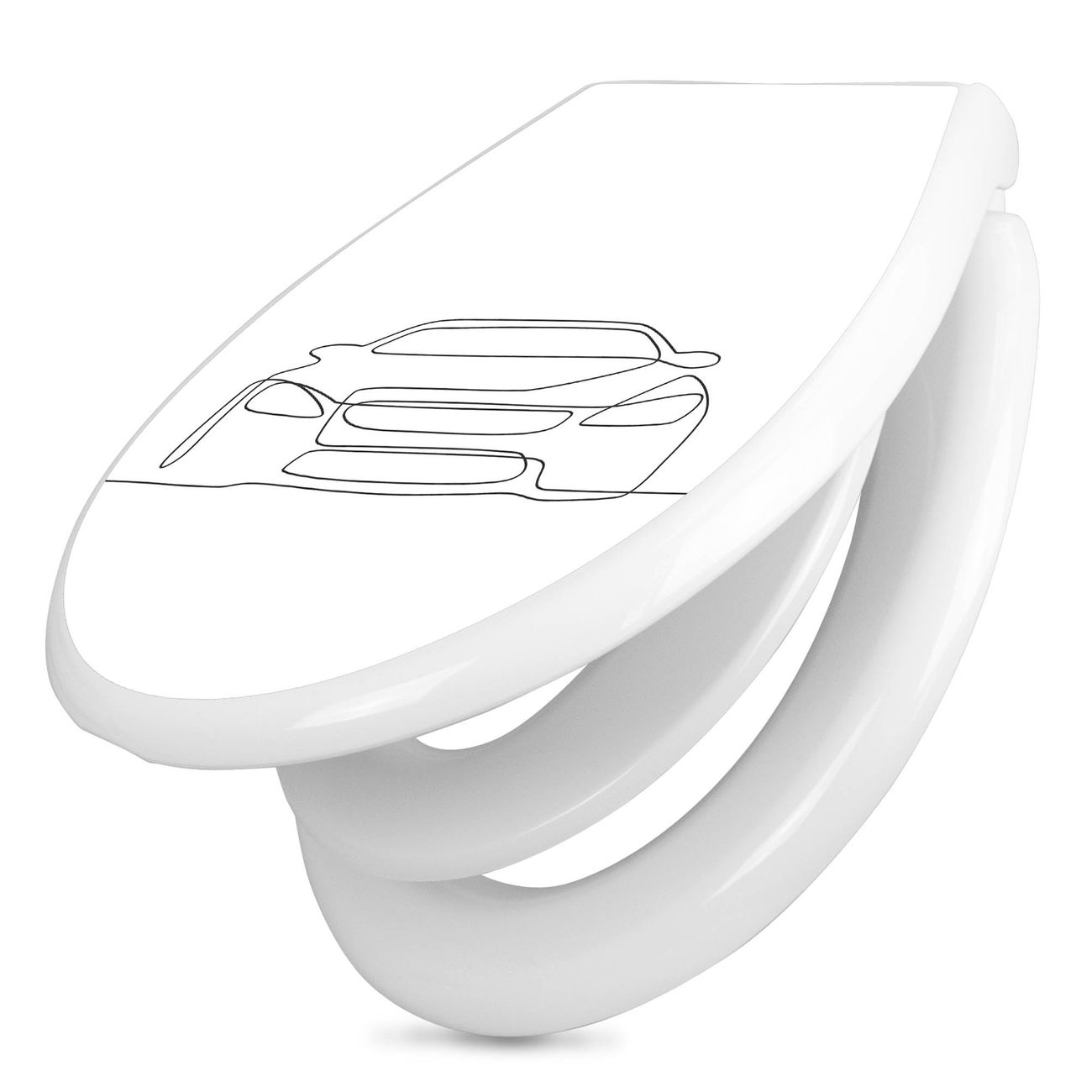 Toilettendeckel weiß mit Absenkautomatik Motiv Lineart Auto