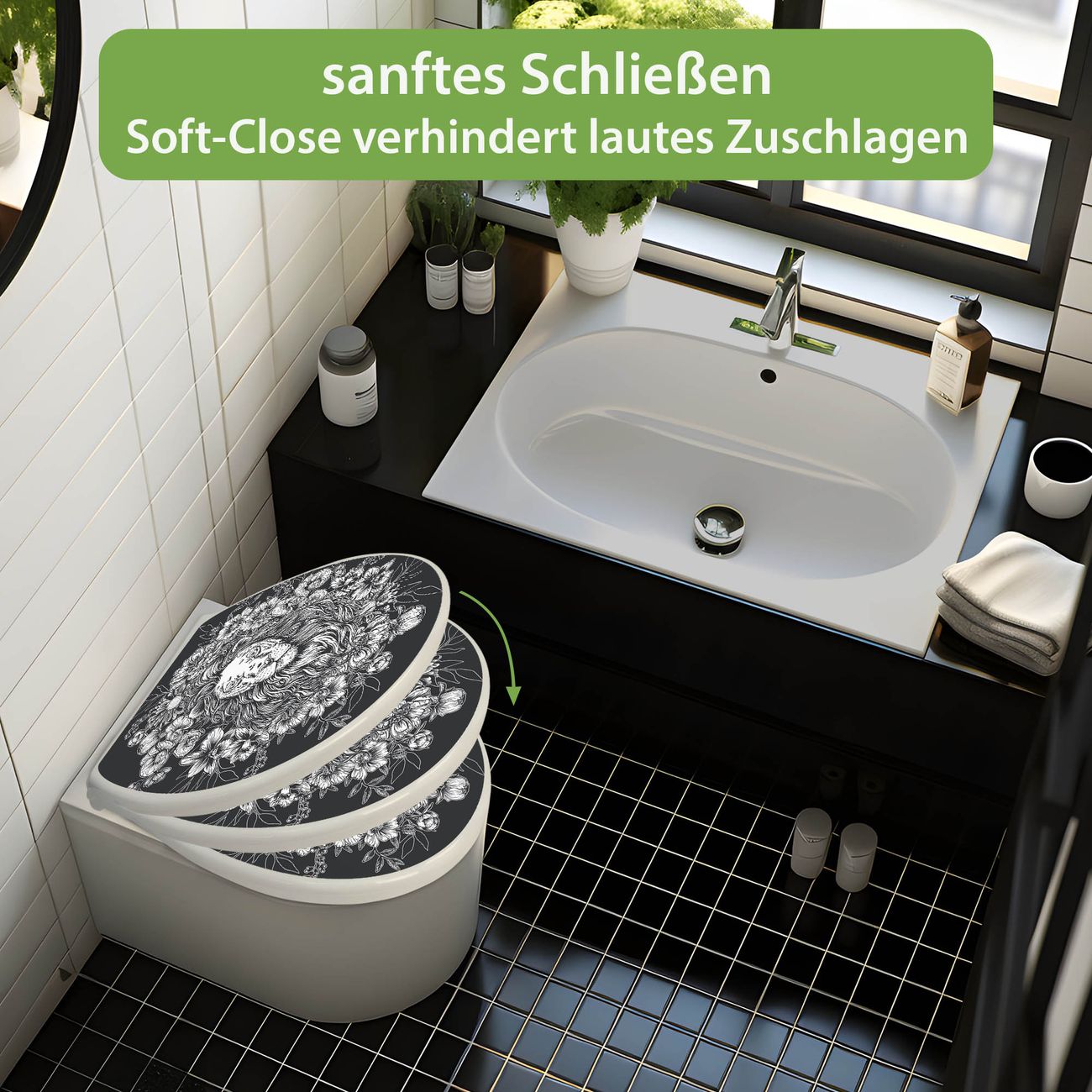 Toilettendeckel weiß mit Absenkautomatik Motiv Löwenblütenpracht