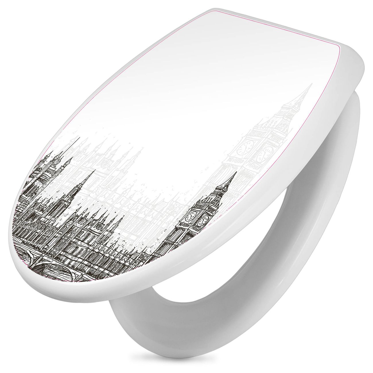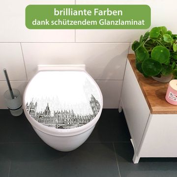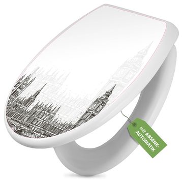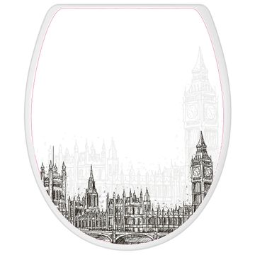 Toilettendeckel weiß mit Absenkautomatik Motiv London Skyline Skizze