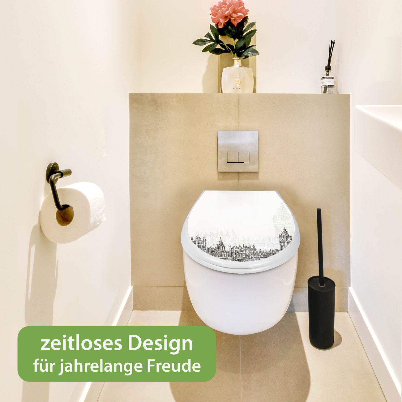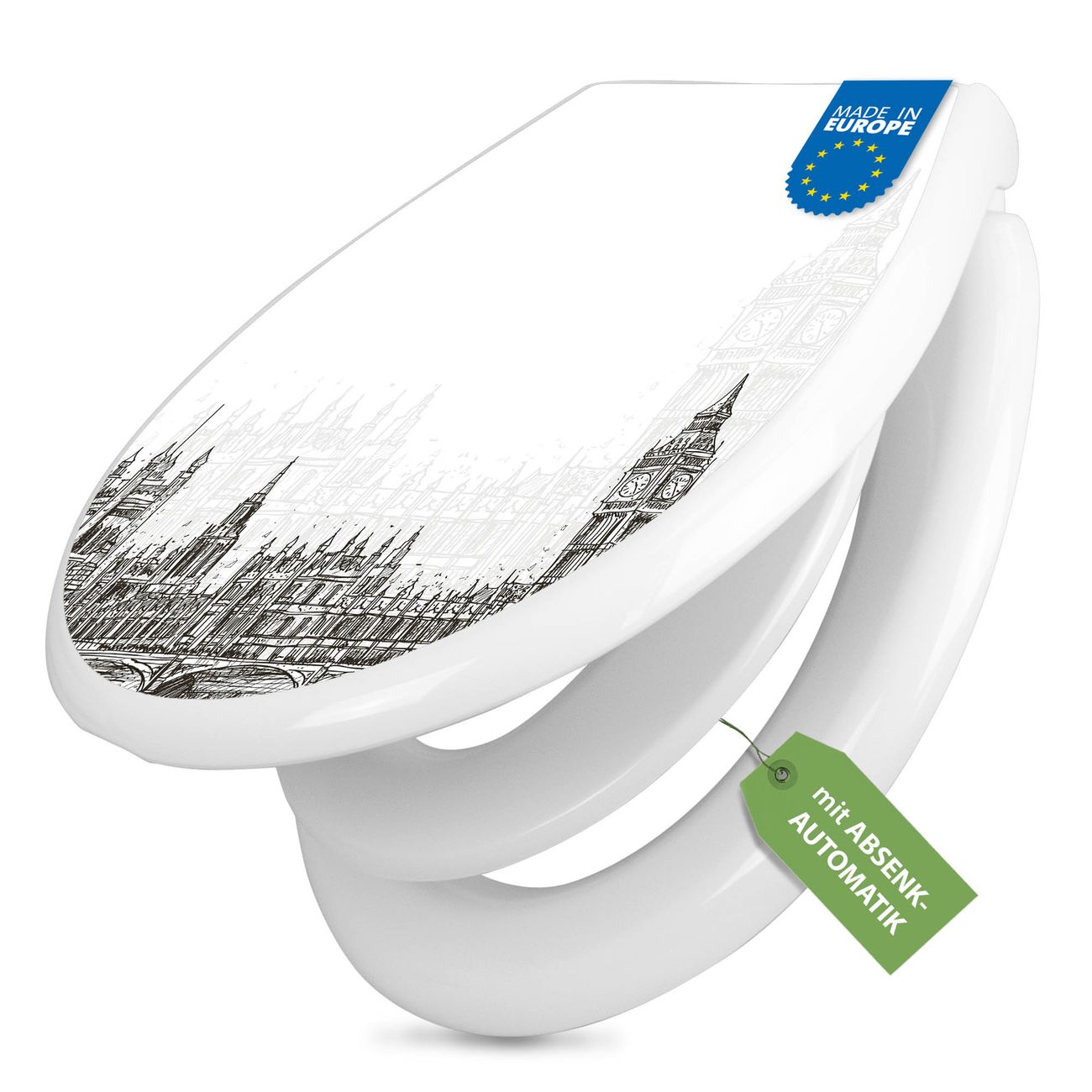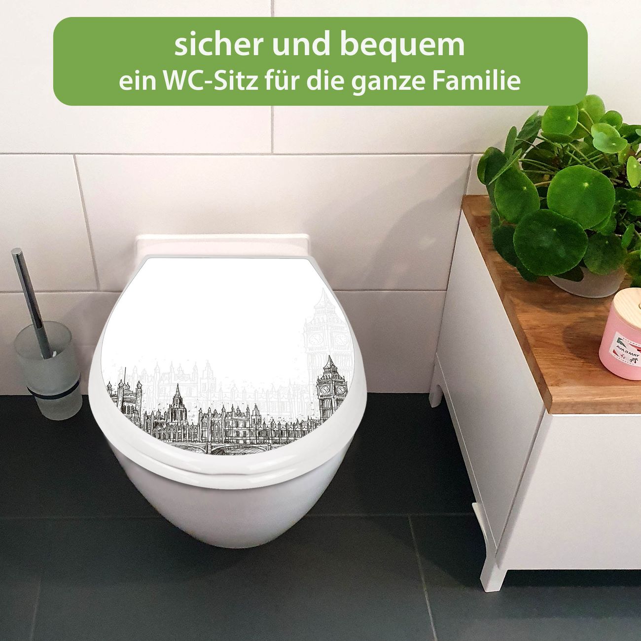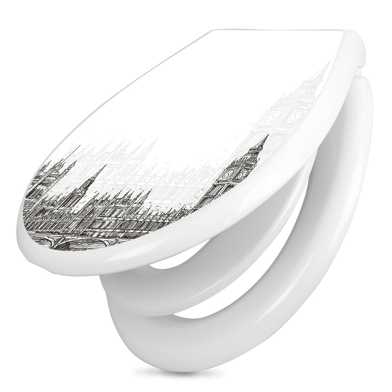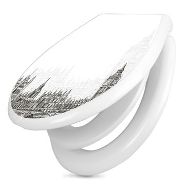 Toilettendeckel weiß mit Absenkautomatik Motiv London Skyline Skizze