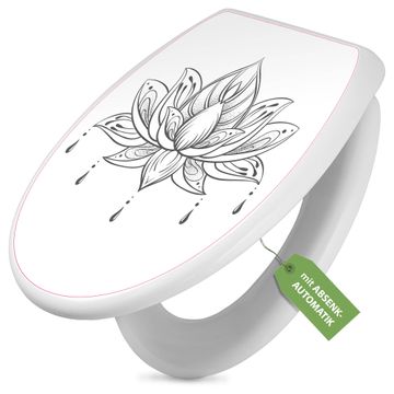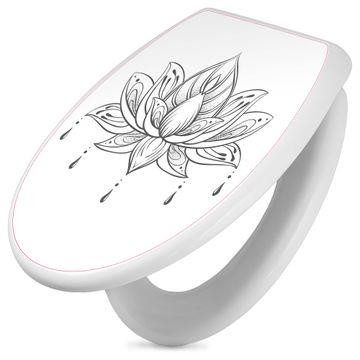 Toilettendeckel weiß mit Absenkautomatik Motiv Lotusblüte 6