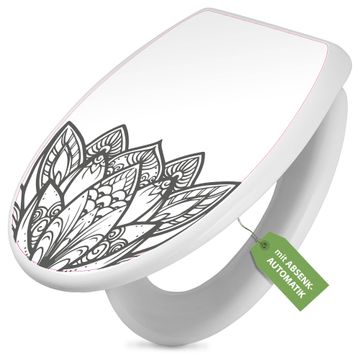 Toilettendeckel weiß mit Absenkautomatik Motiv Lotusblüte 8