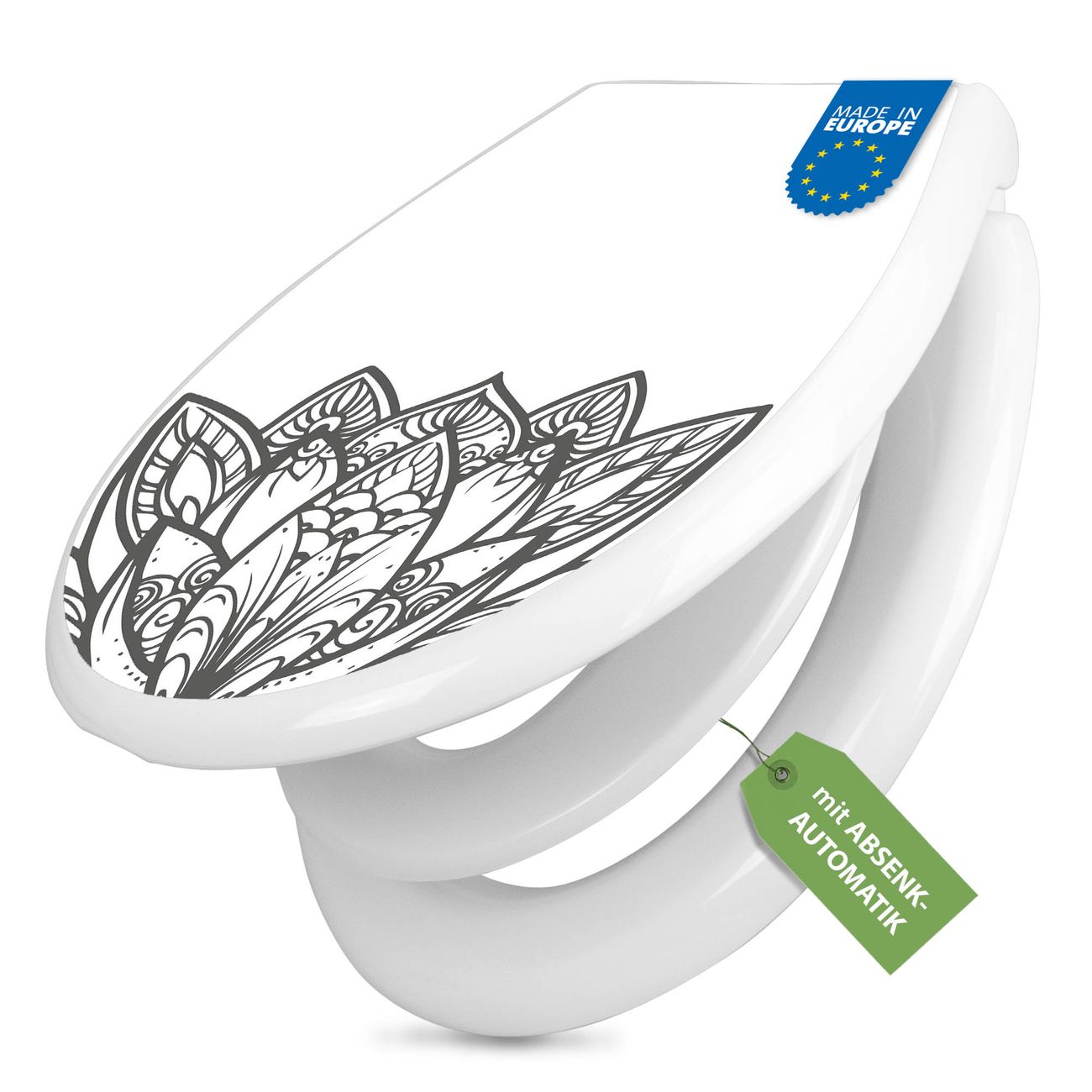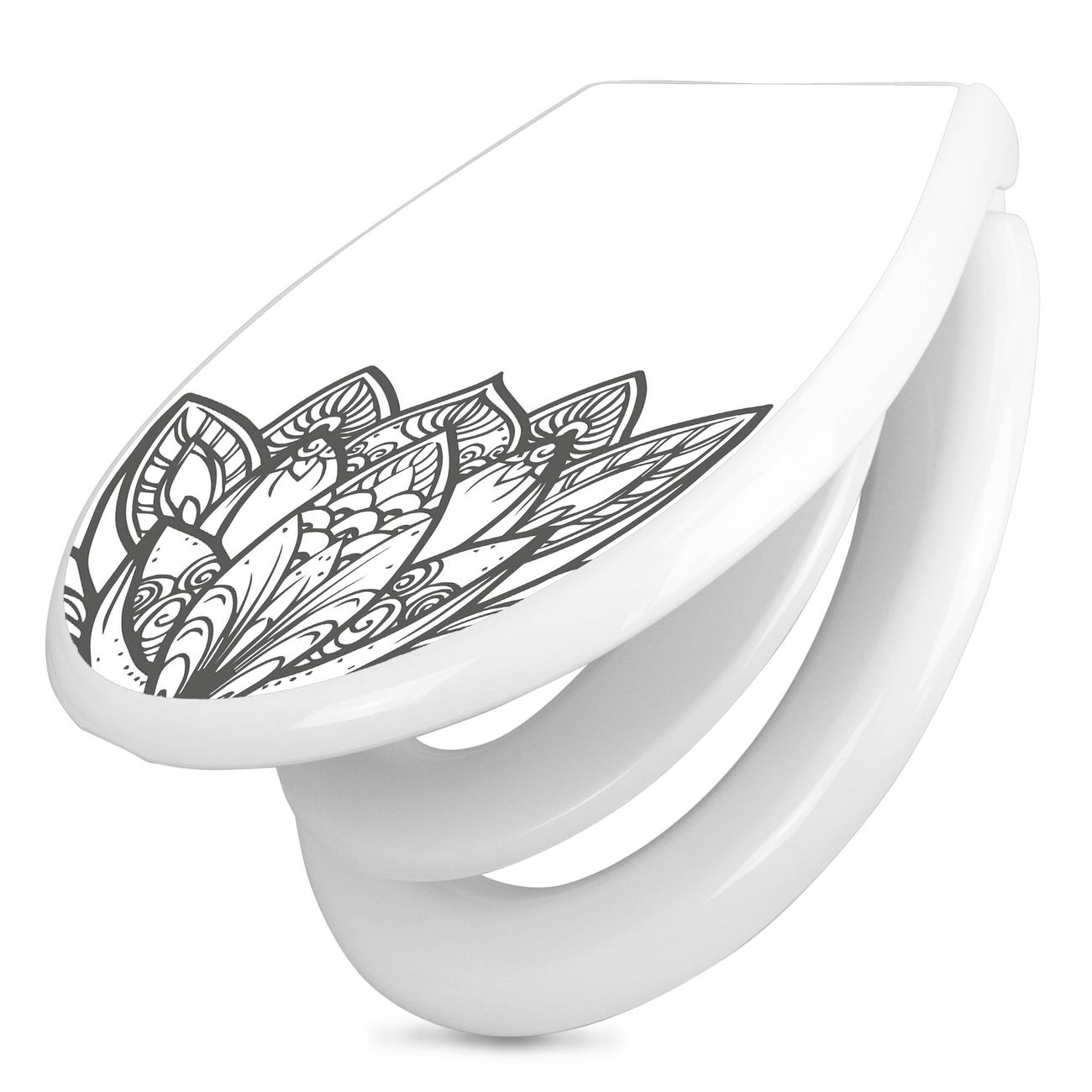Toilettendeckel weiß mit Absenkautomatik Motiv Lotusblüte 8