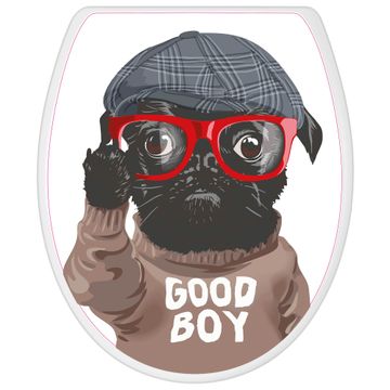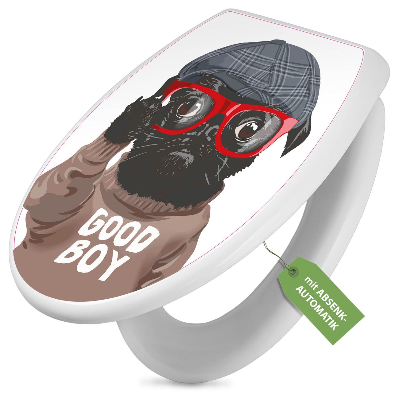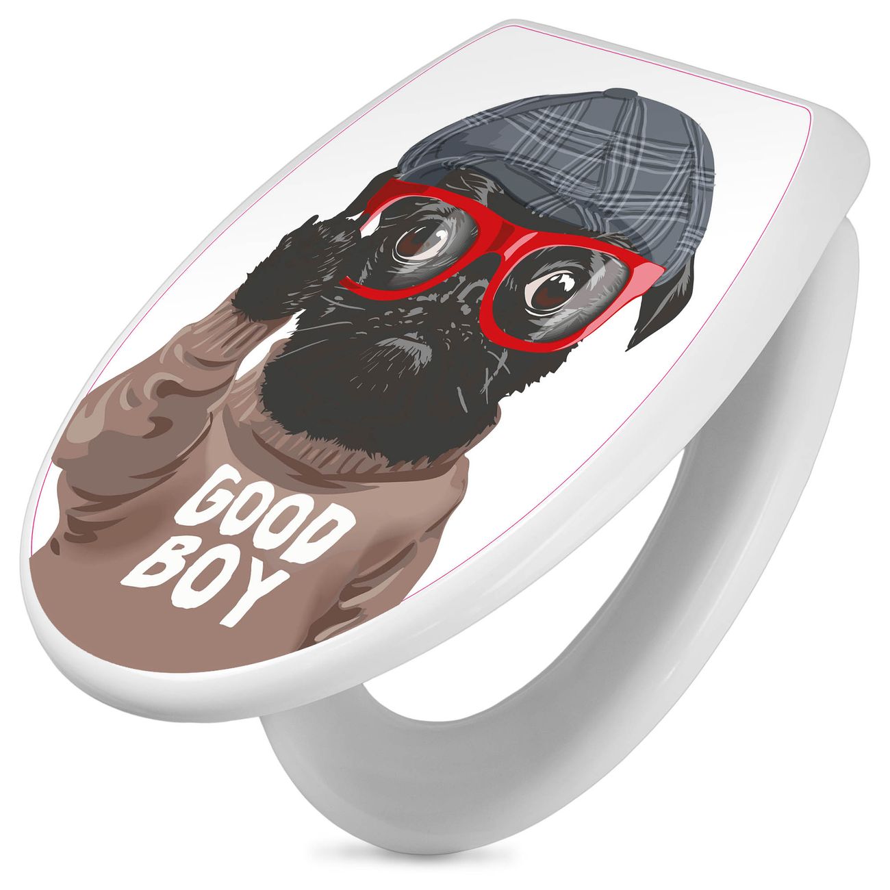 Toilettendeckel weiß mit Absenkautomatik Motiv Lustiger Mops mit Brille