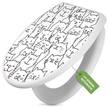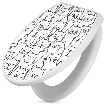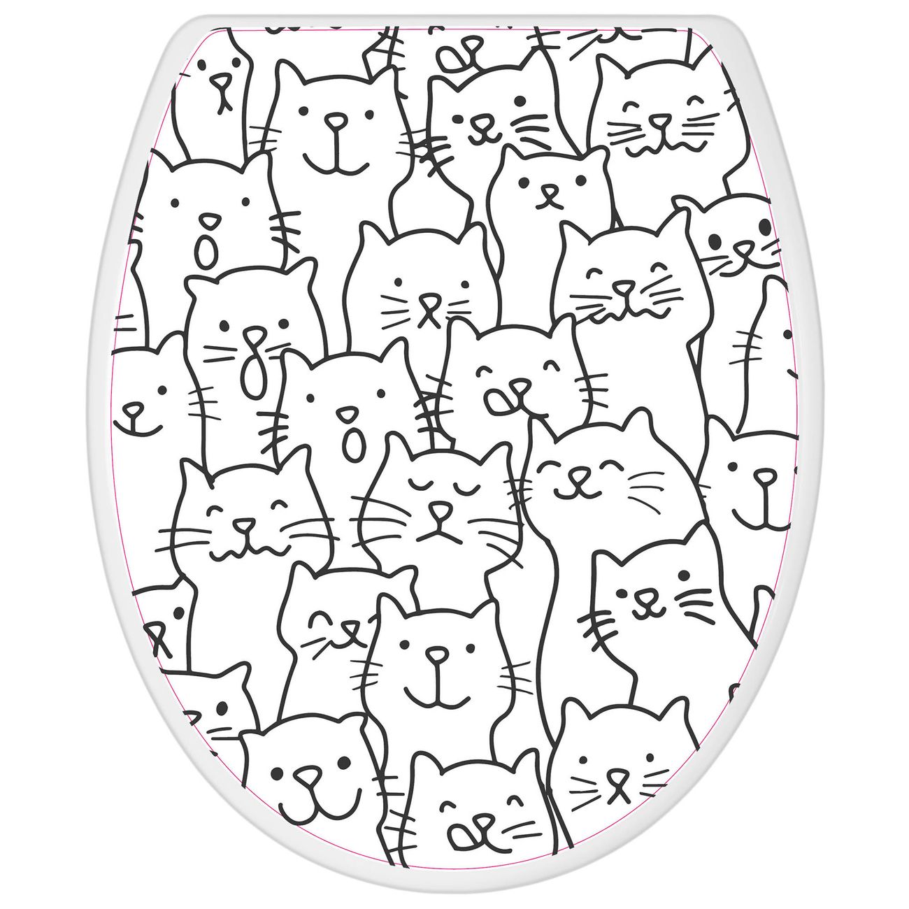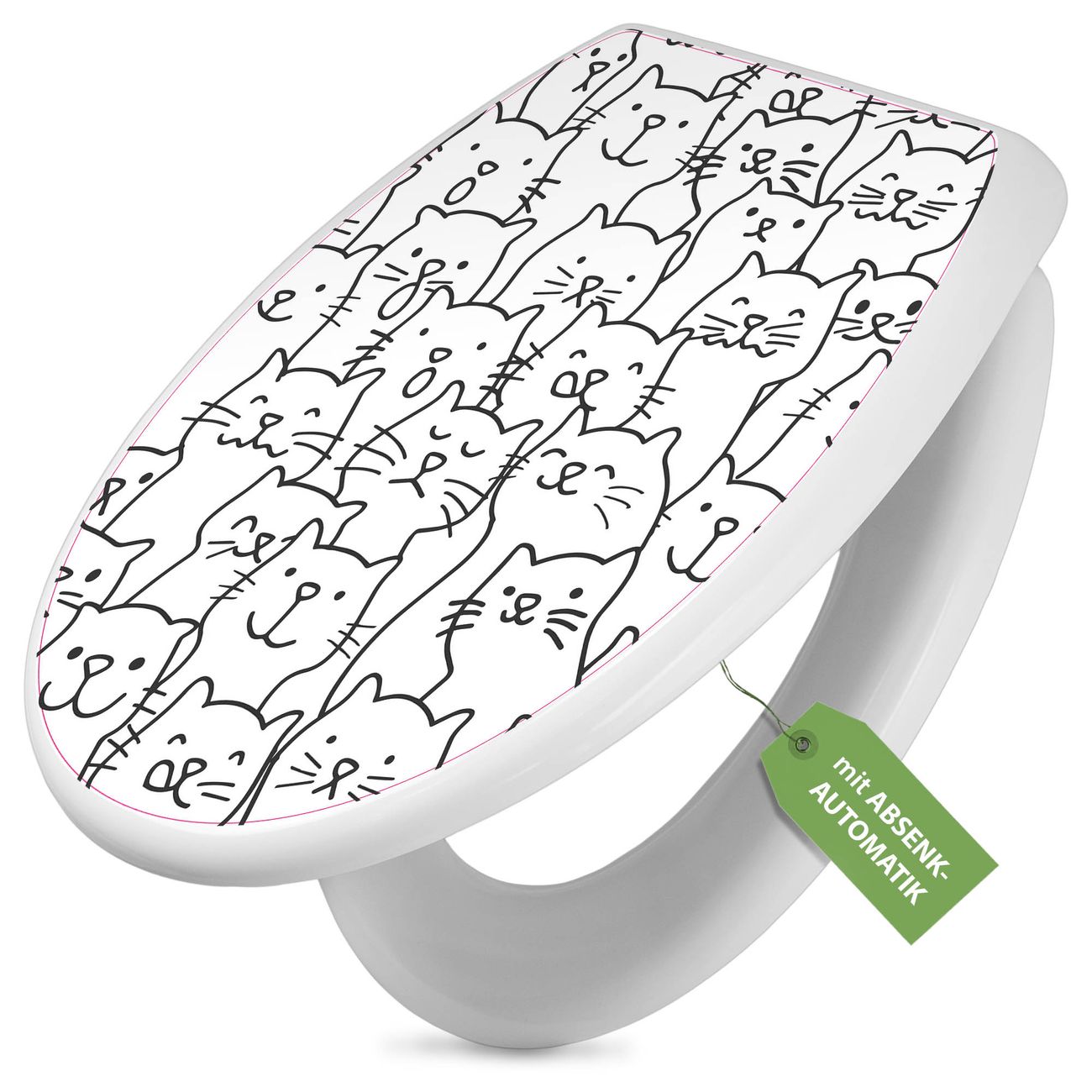 Toilettendeckel weiß mit Absenkautomatik Motiv Lustiges Katzenmuster