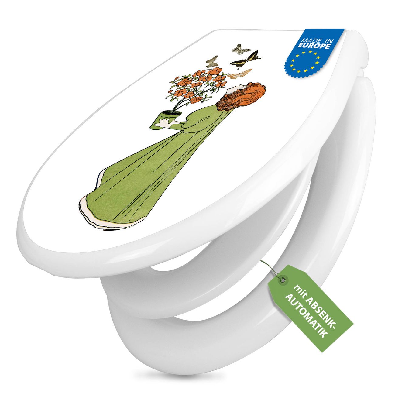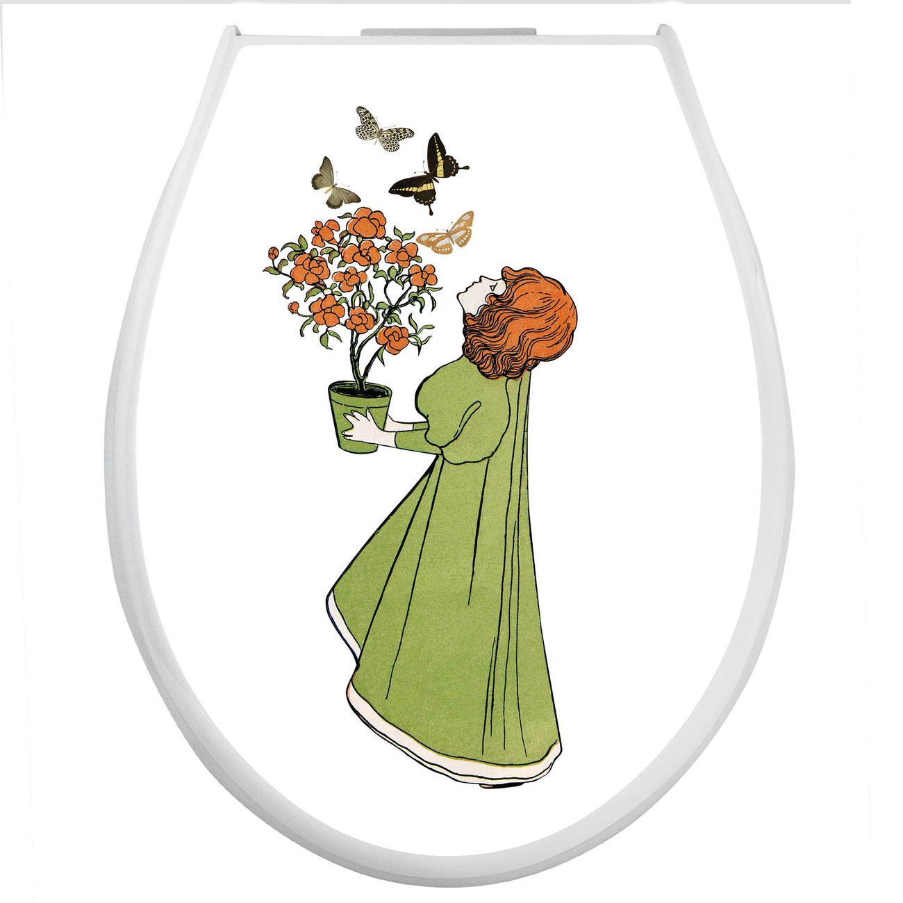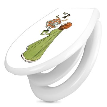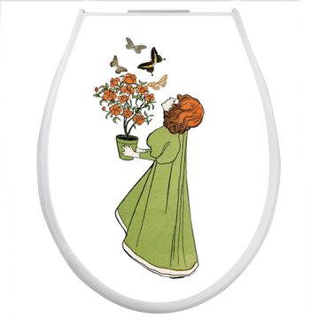 Toilettendeckel weiß mit Absenkautomatik Motiv Mädchen mit Blumentopf Vintage