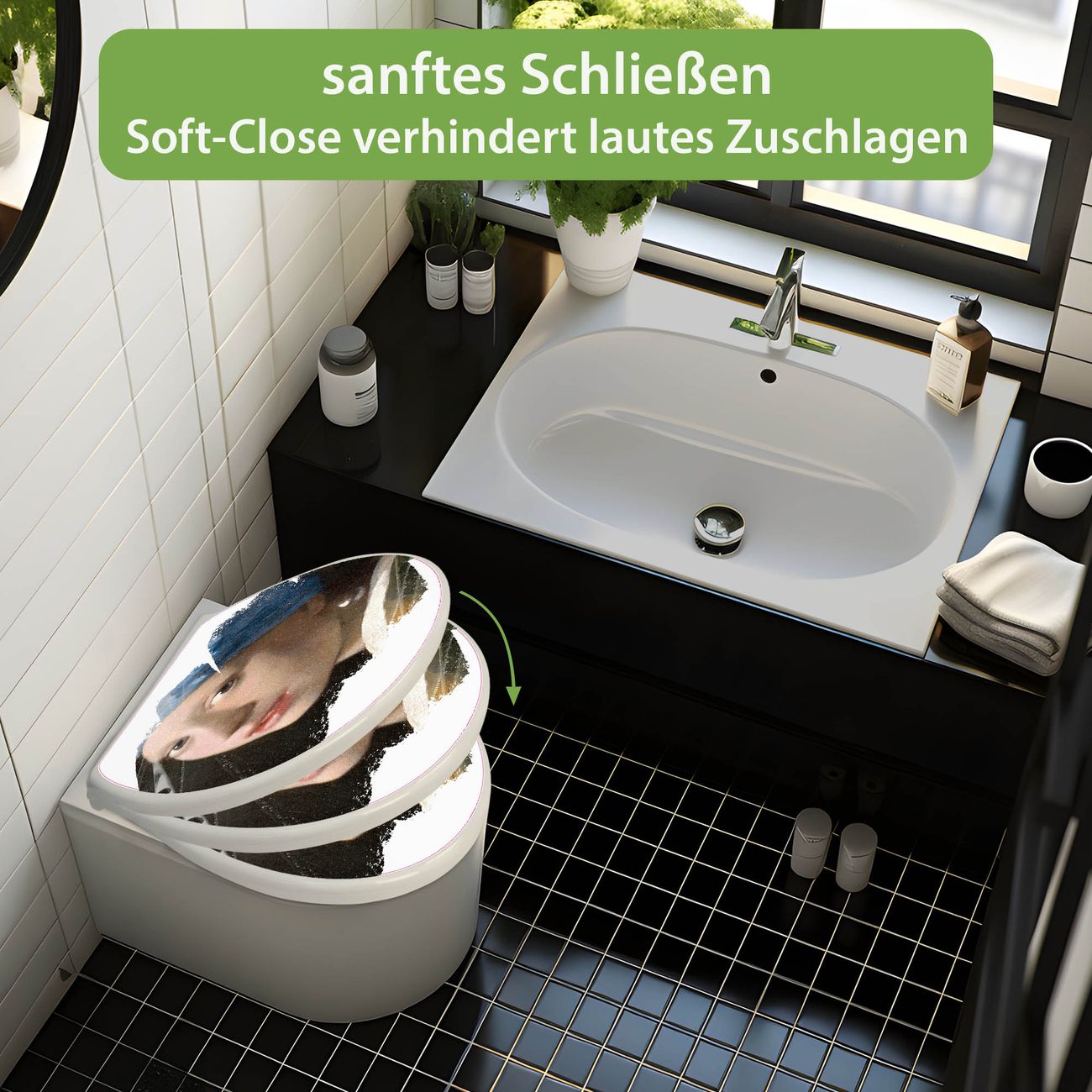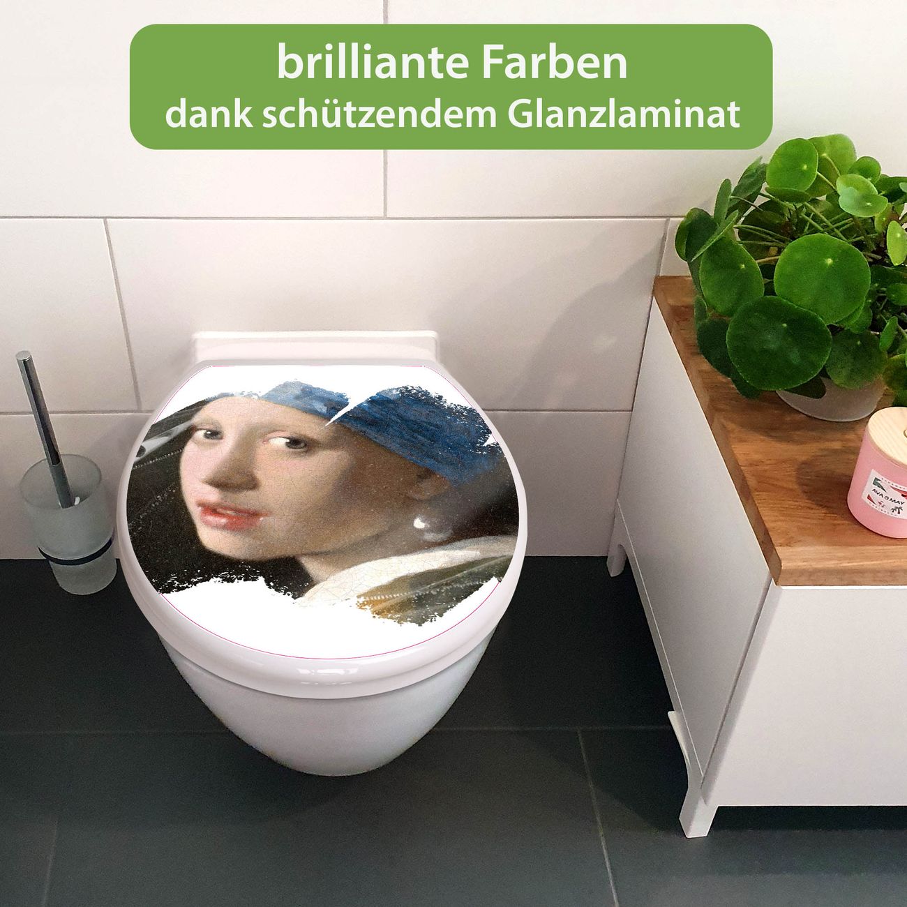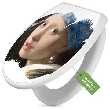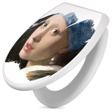 Toilettendeckel weiß mit Absenkautomatik Motiv Mädchen mit dem Perlenohrring