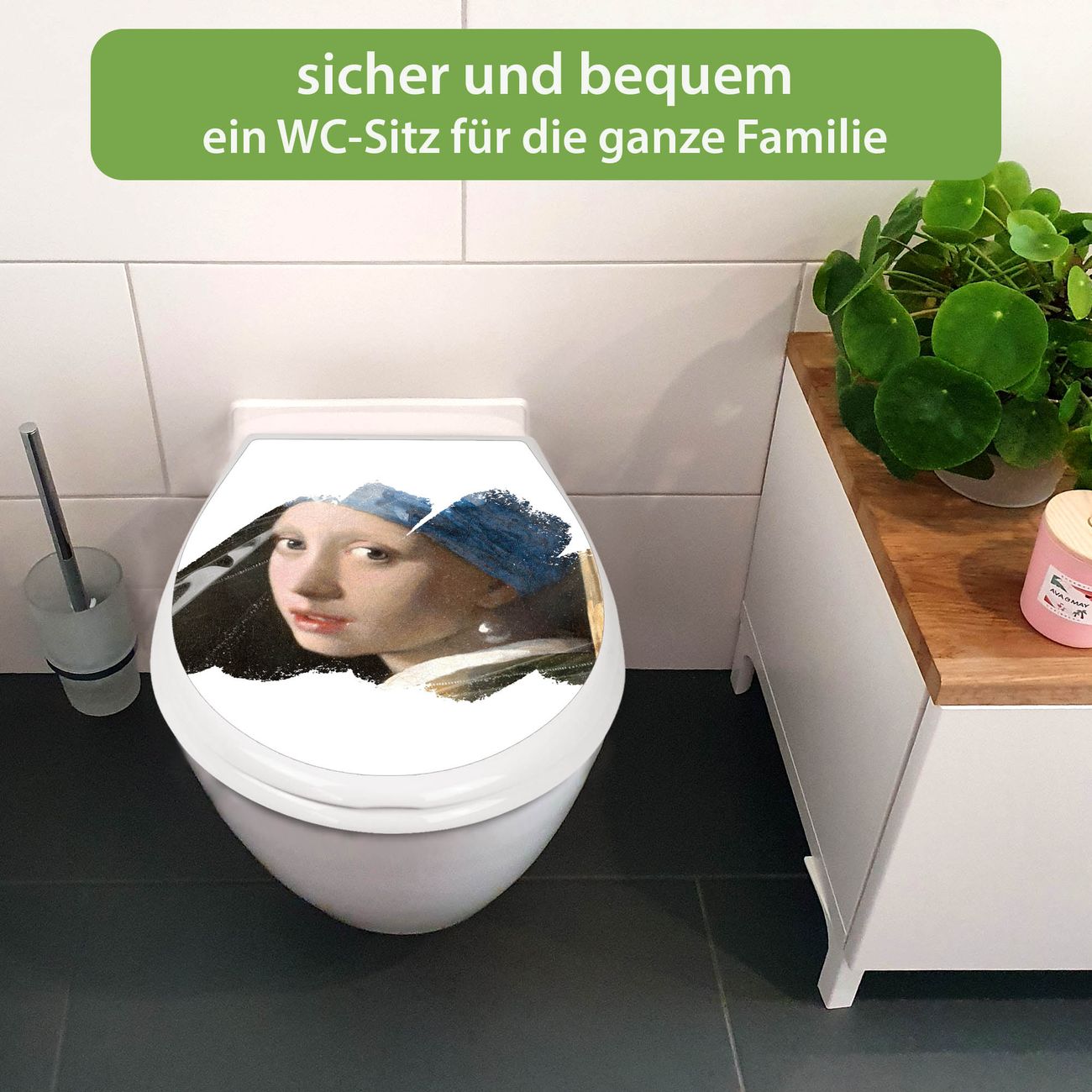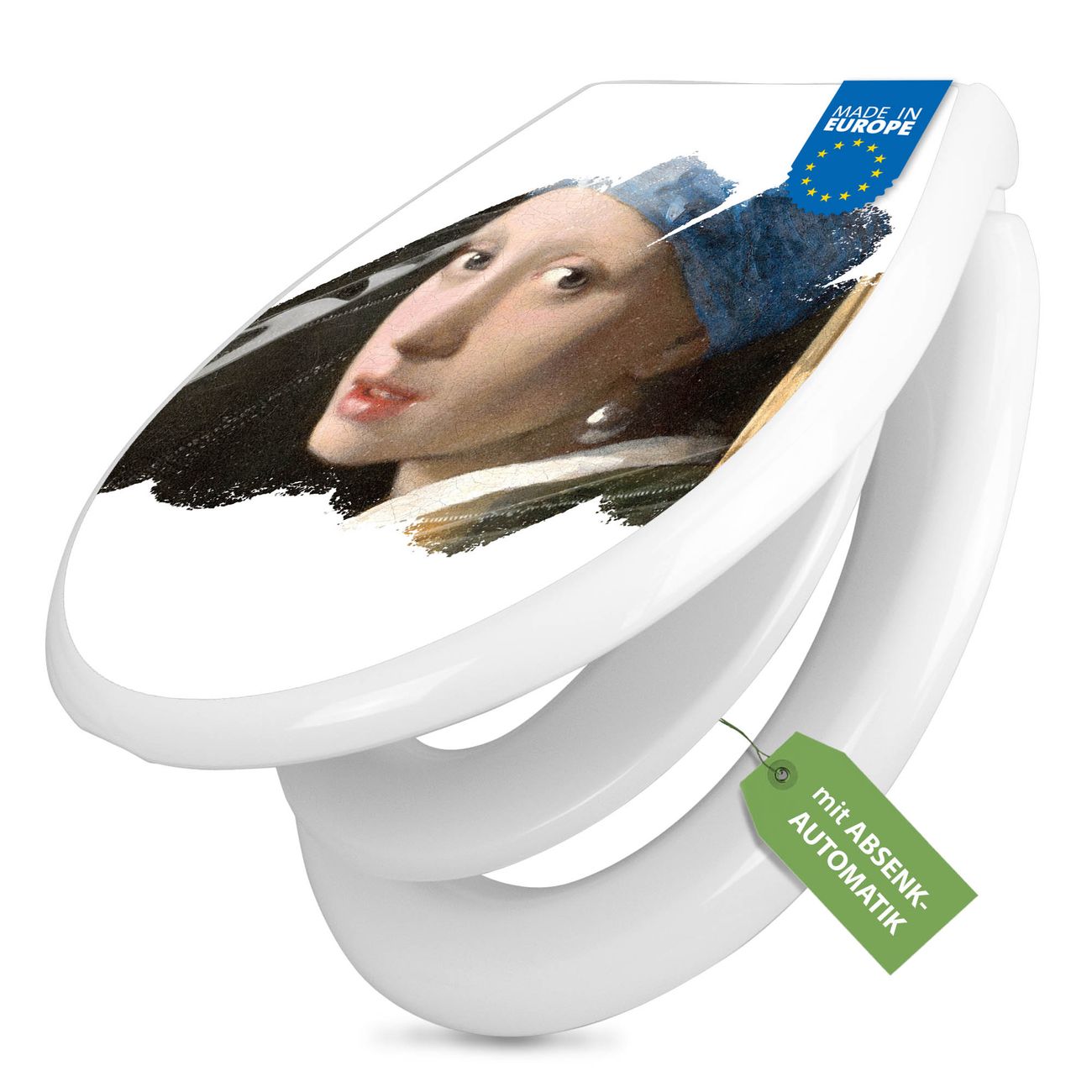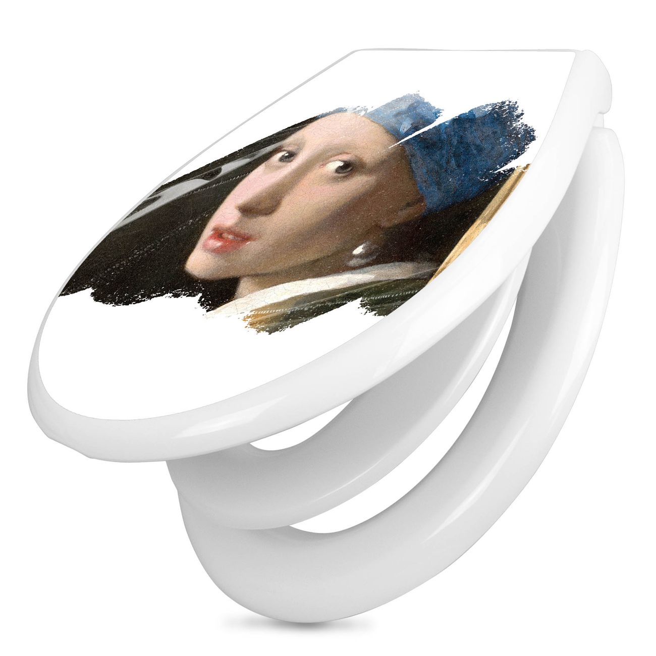 Toilettendeckel weiß mit Absenkautomatik Motiv Mädchen mit dem Perlenohrring
