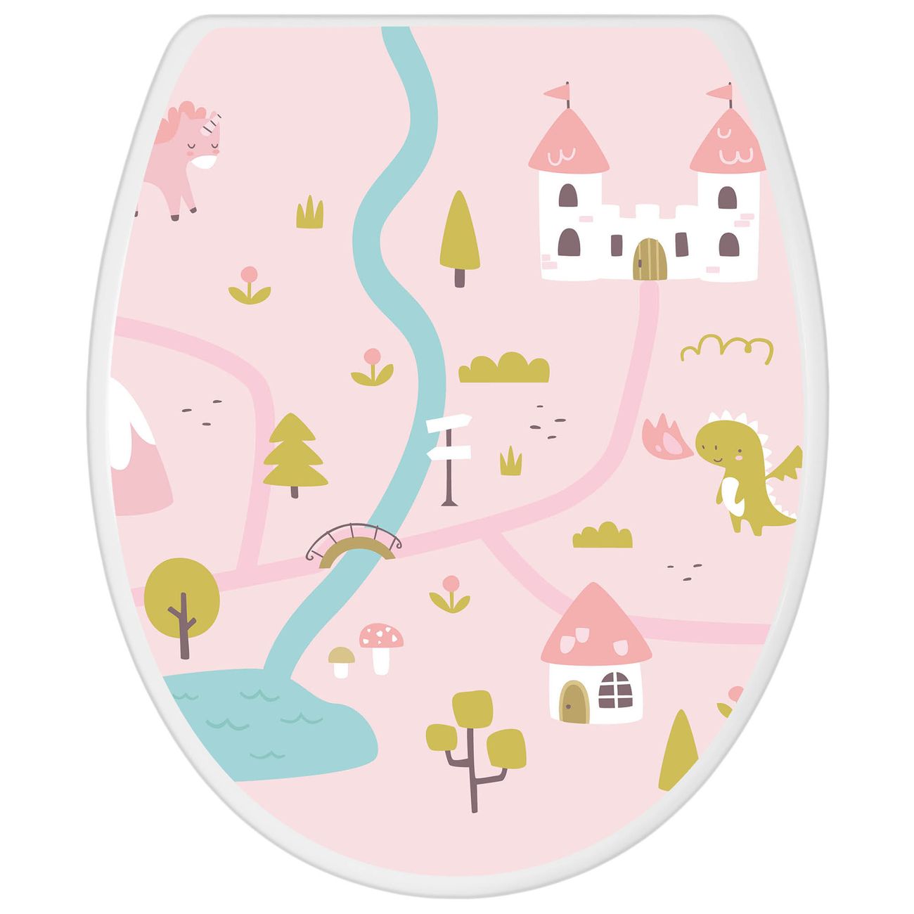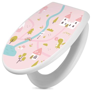 Toilettendeckel weiß mit Absenkautomatik Motiv Märchendorf 2
