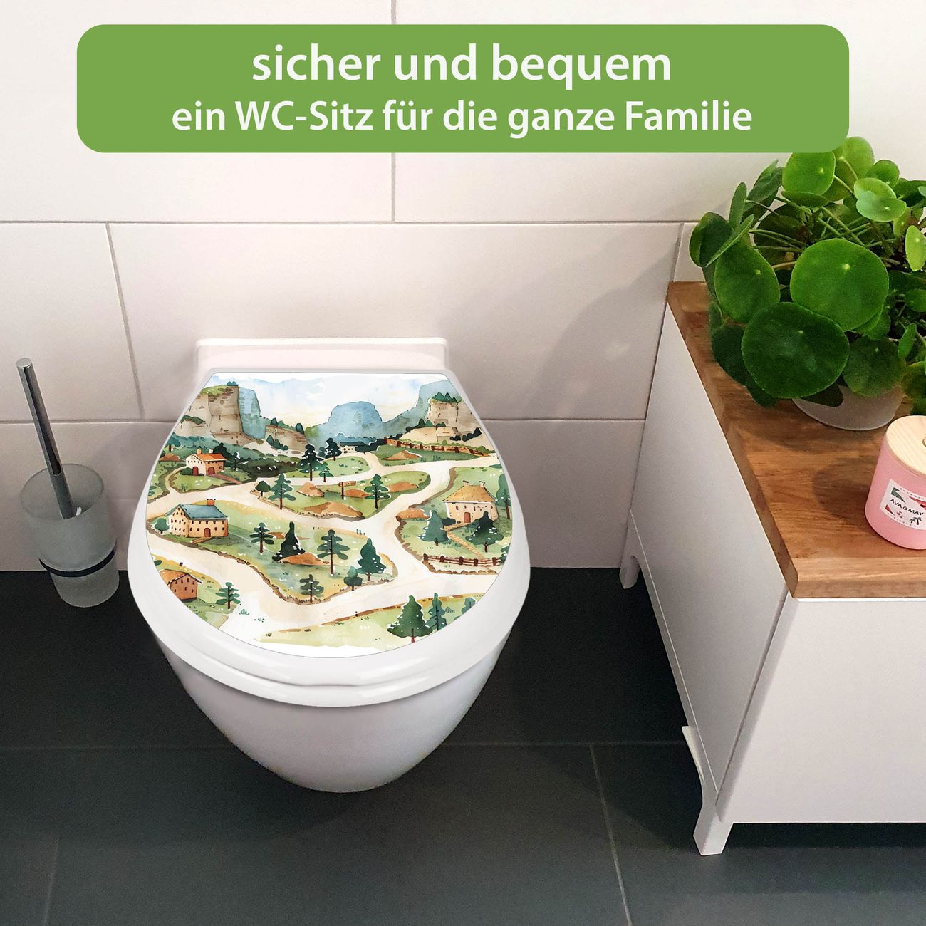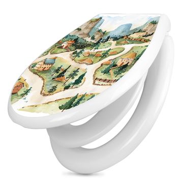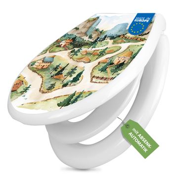 Toilettendeckel weiß mit Absenkautomatik Motiv Märchendorf 3