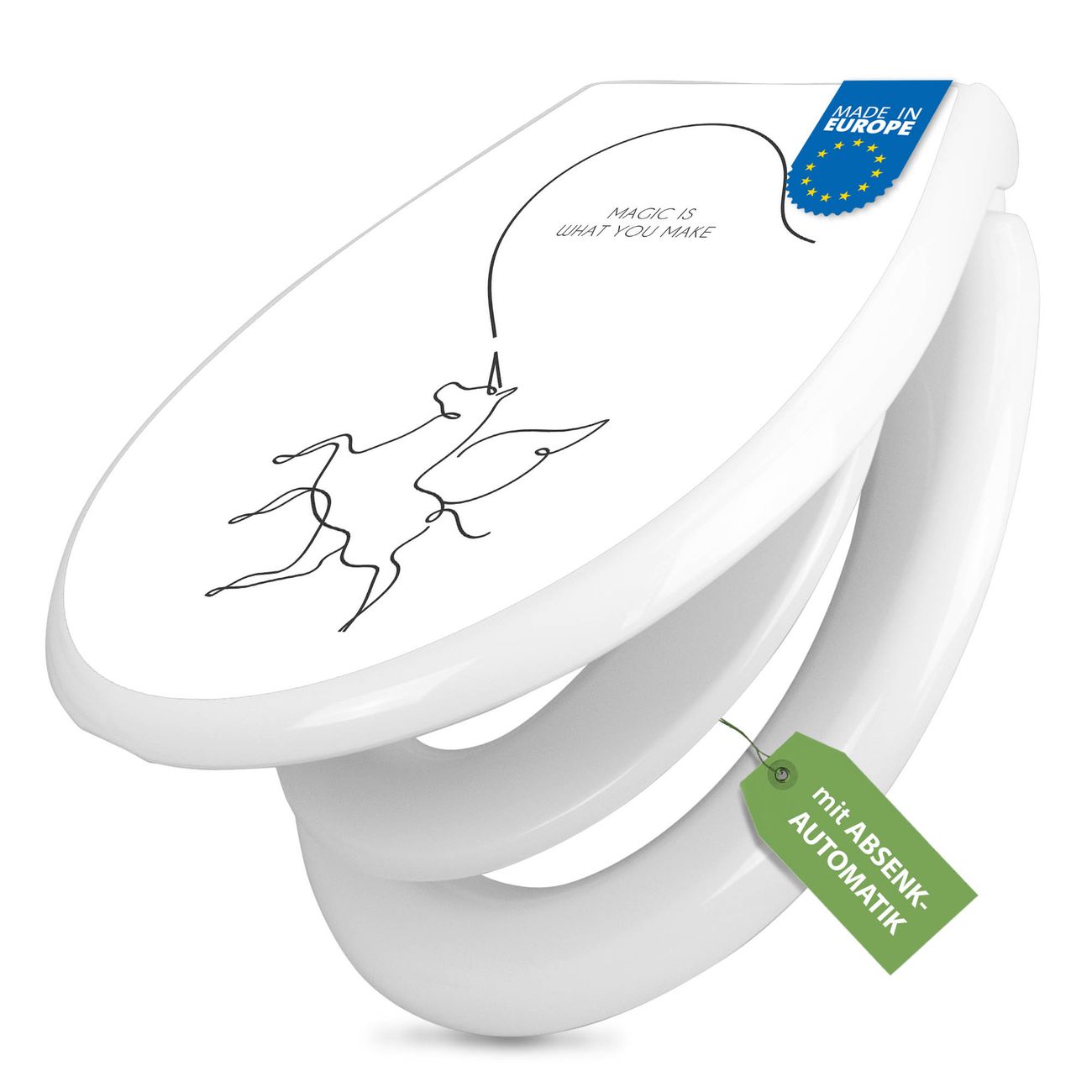 Toilettendeckel weiß mit Absenkautomatik Motiv Magic is what you make