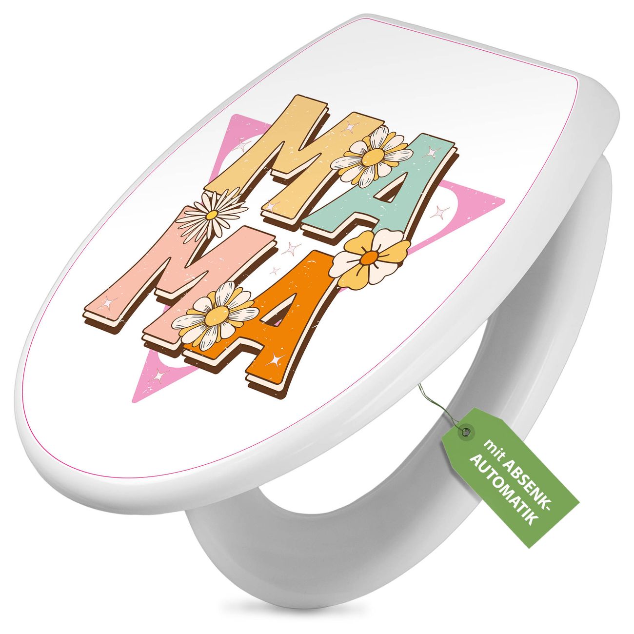 Toilettendeckel weiß mit Absenkautomatik Motiv Mama Liebe Retro