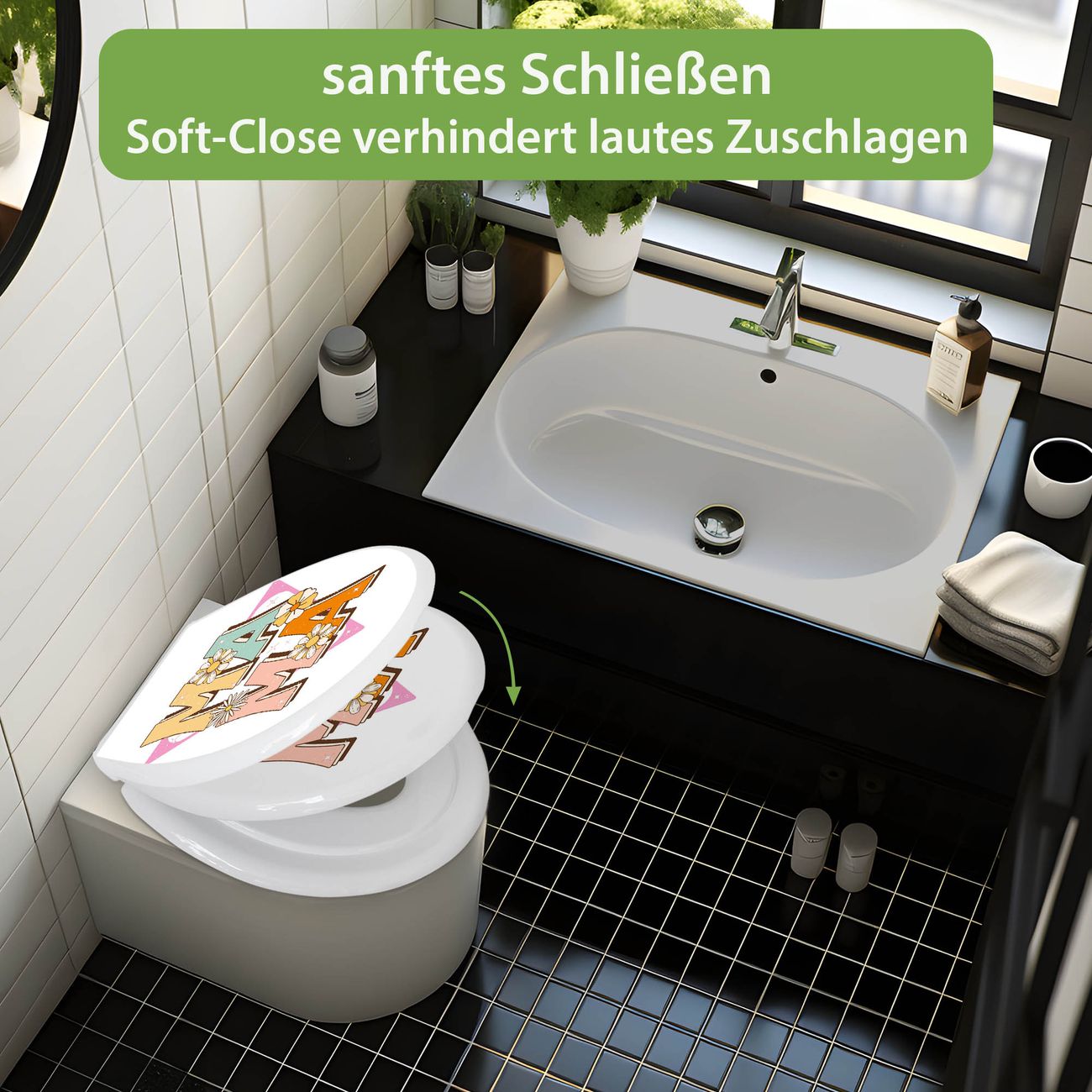 FUNKTION:Mit dem banjado Familien WC Sitz mit Absenkautomatik und dem Motiv Motiv Mama Liebe Retro verbinden Sie Design mit Funktionalität. Sie erhalten den Toilettendeckel in bewährt guter Qualität mit Montagematerial passend auf alle Euro-WC-Becken. Die Gesamtgröße beträgt 37,1cm x 44,9cm x 5cm, die Grundfarbe ist weiß.</p> DESIGN:Der Klodeckel in weiß mit Motiv Motiv Mama Liebe Retro hat eine ansprechende Optik, eine besondere Form und ist sehr stabil. Das Motiv besteht aus einer farbbrillianten Motivfolie, die durch ein Schutzlaminat zusätzlich vor Kratzern schützt. Der integrierte Kindersitz fügt sich harmonisch ein. DETAILS:Der Toilettensitz mit Soft Close besteht aus hochwertigem Polypropylen, ist geruchlos, ungiftig und kann mit handelsüblicher Seife gereinigt werden. Die Montage kann von von oben oder von unten erfolgen und ist kinderleicht. NUTZEN:Mit Hilfe der detaillierten Aufbauanleitung ermöglichen wir eine schnelle und unkomplizierte Montage. Die banjado Klobrille ist universell geeignet für alle Euro-WC-Schüsseln. Der Kindersitz kann unkompliziert entfernt werden. BANJADO:Ihr WC-Deckel wird in Sachsen in einer kleinen Manufaktur von Hand veredelt. Die Motivfolie ist lösungsmittelfrei und schutzlaminiert für einen langen Halt. Wir wünschen viel Freude bei der Auswahl eines schönen Motivs.