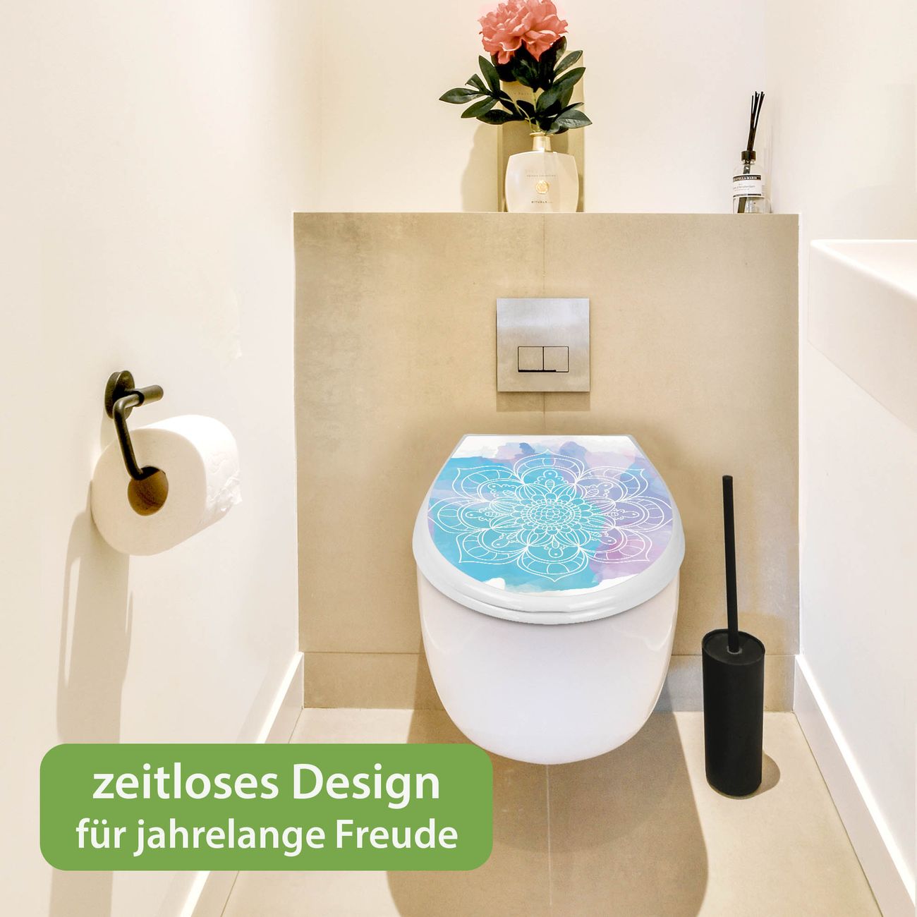Toilettendeckel weiß mit Absenkautomatik Motiv Mandala Tranquility