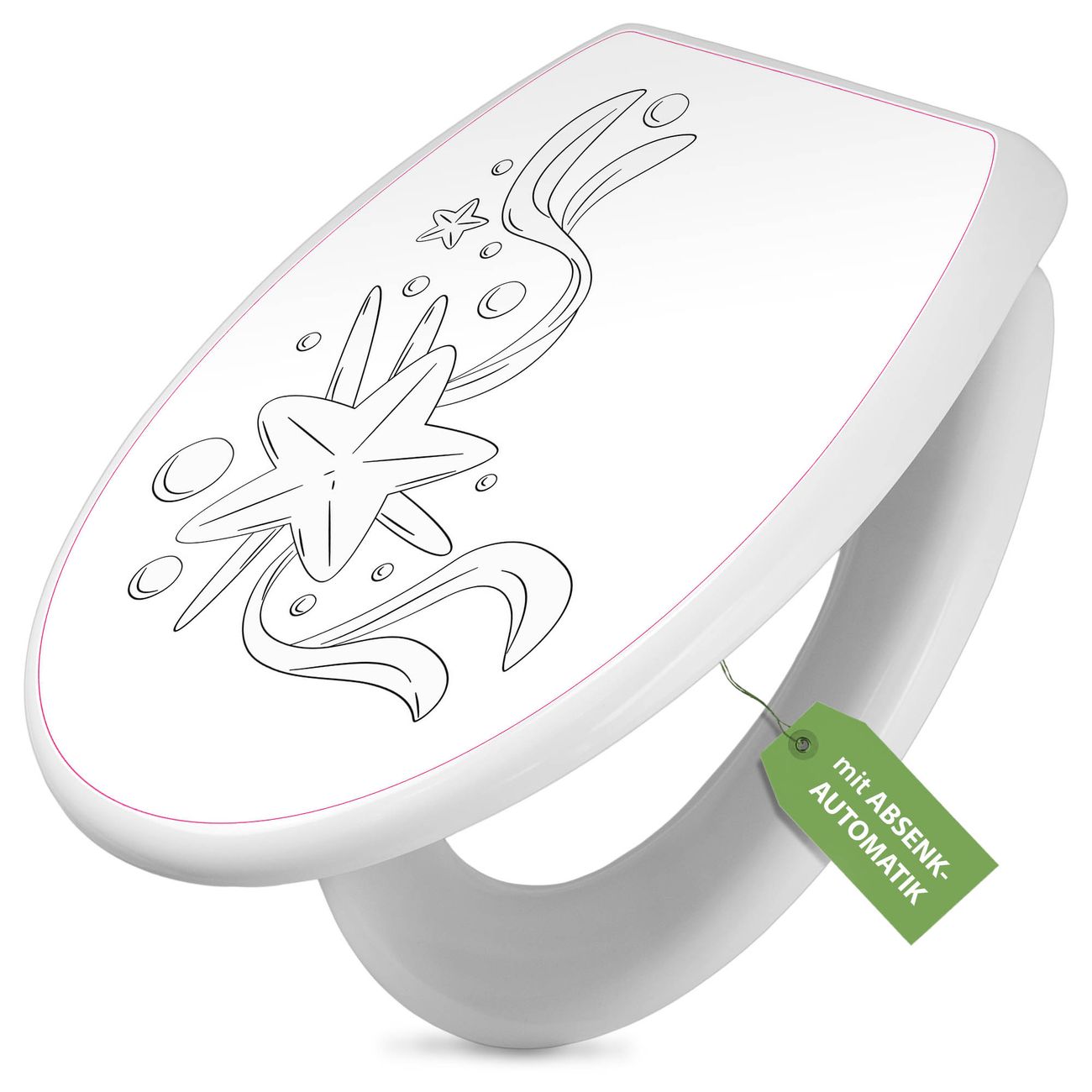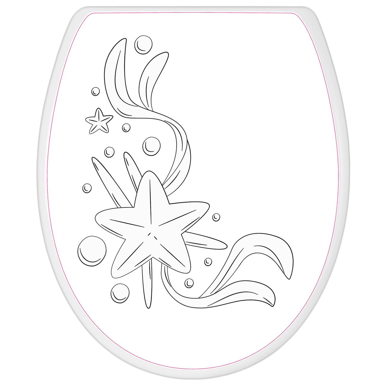 Toilettendeckel weiß mit Absenkautomatik Motiv Maritimer Seesternrahmen