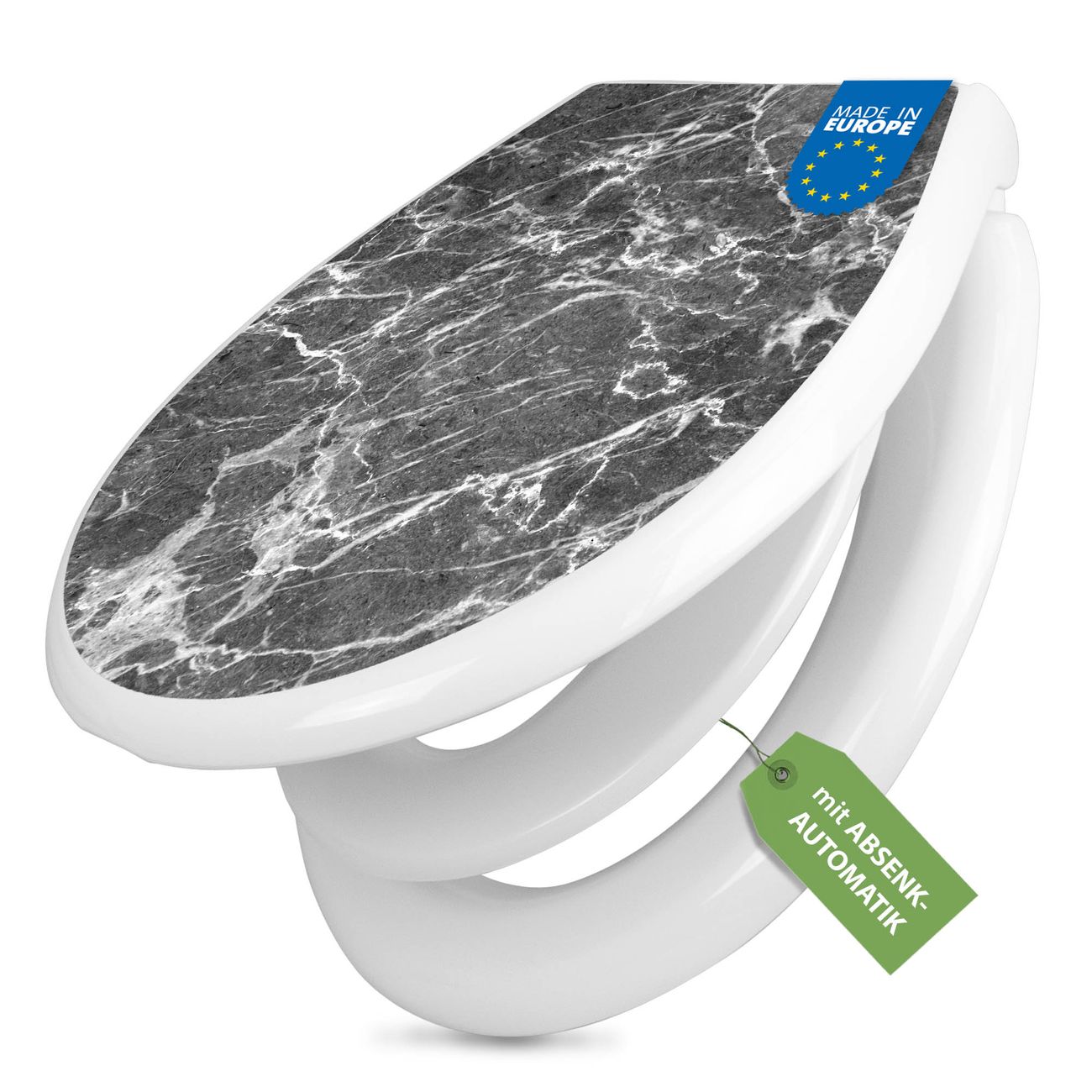 Toilettendeckel weiß mit Absenkautomatik Motiv Marmorstein