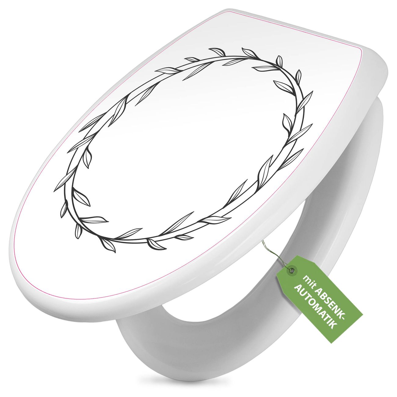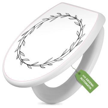 Toilettendeckel weiß mit Absenkautomatik Motiv Minimalistischer Blätterkranz