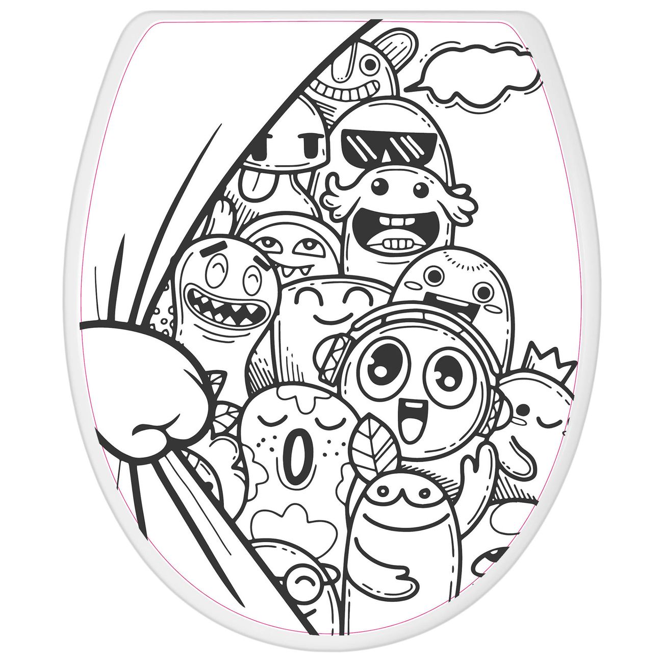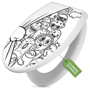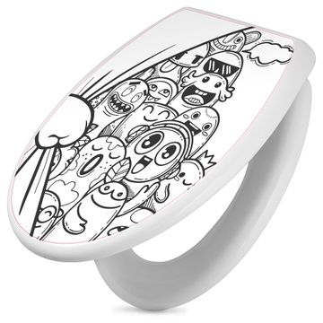 Toilettendeckel weiß mit Absenkautomatik Motiv Monsterparty