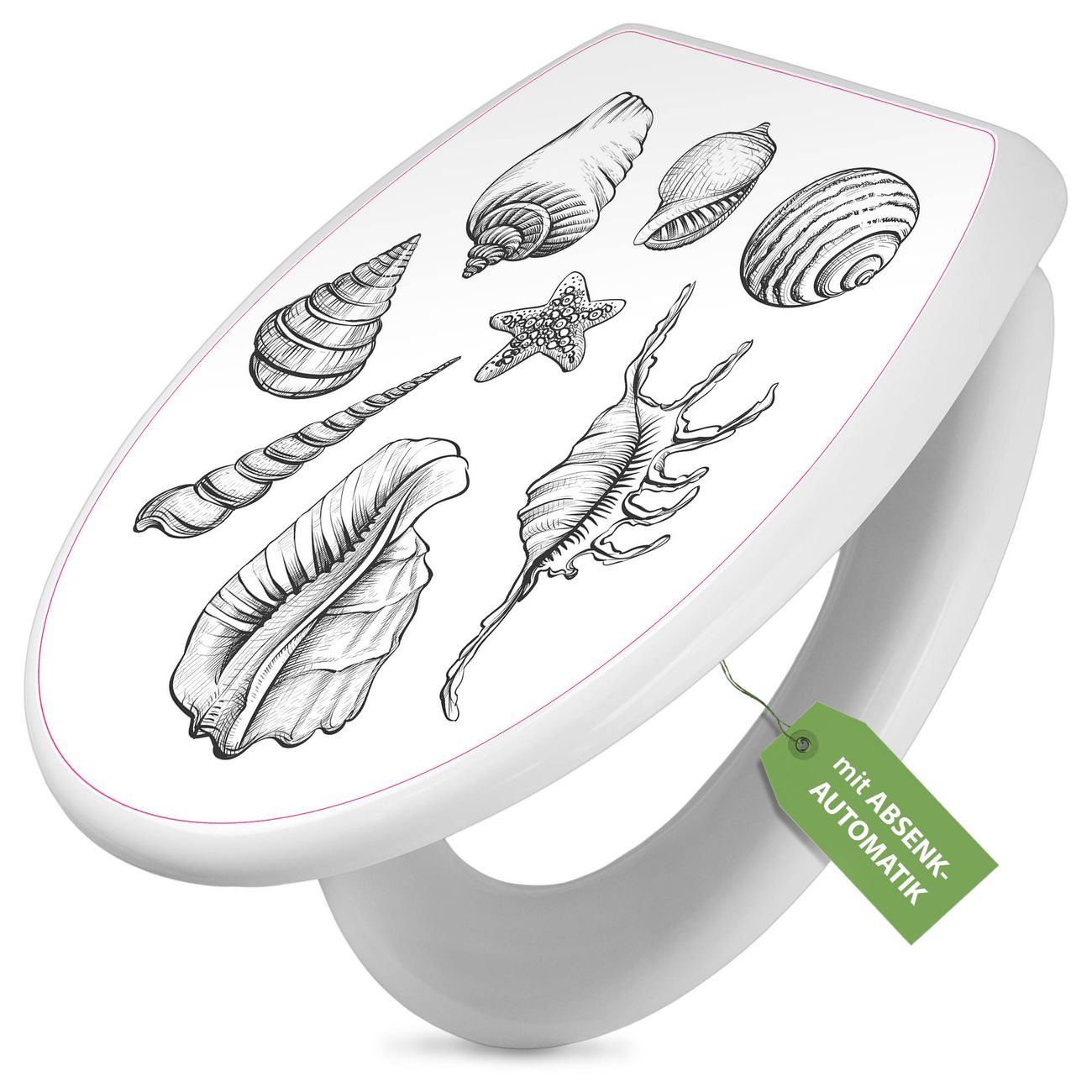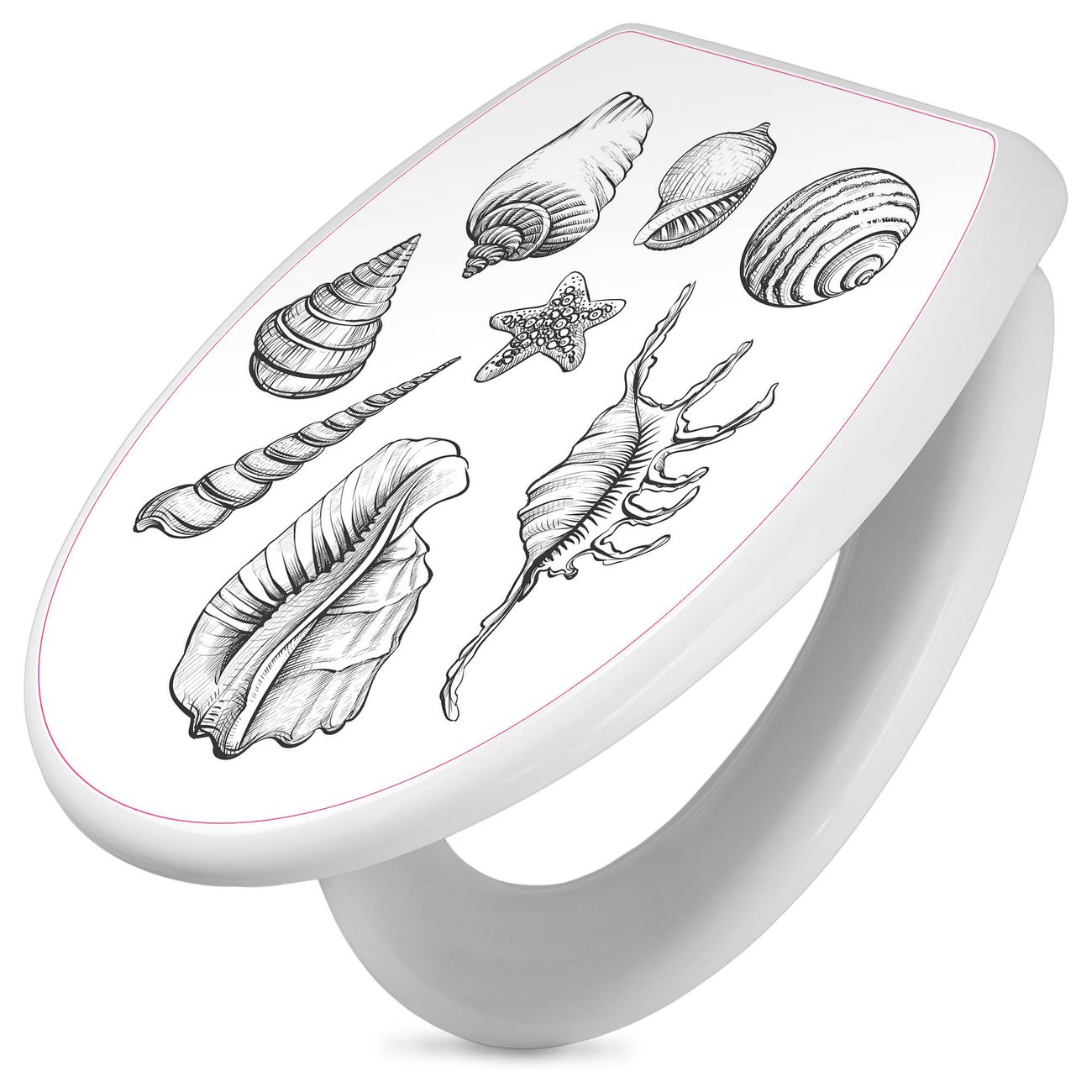 Toilettendeckel weiß mit Absenkautomatik Motiv Muschel 10
