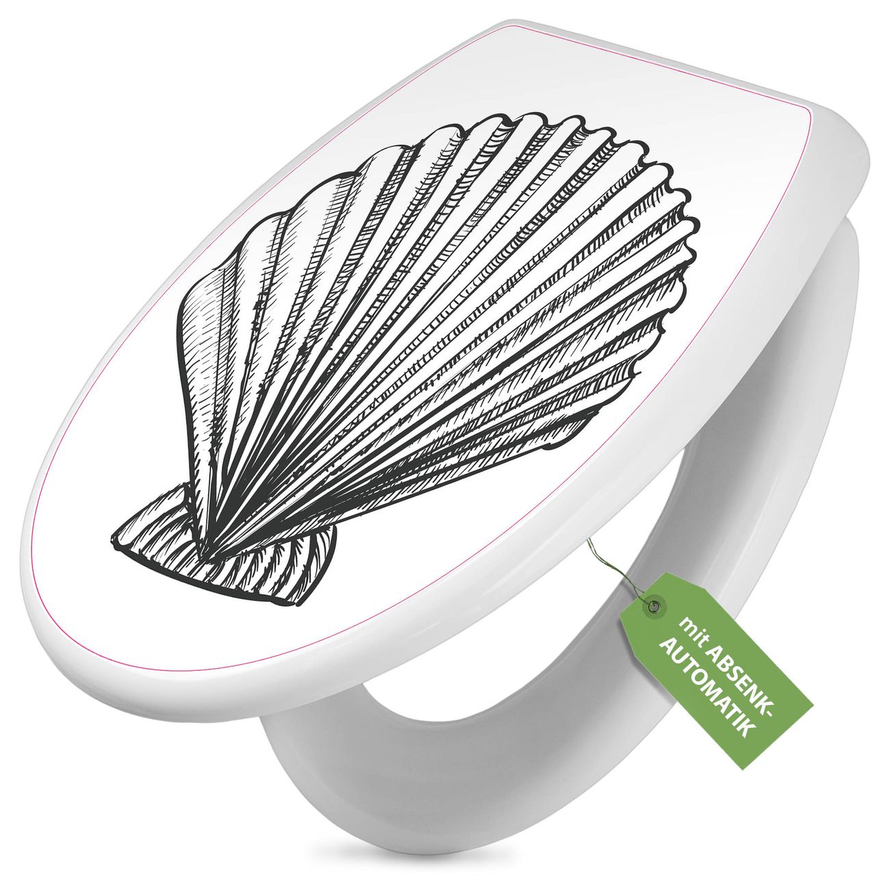 Toilettendeckel weiß mit Absenkautomatik Motiv Muschel 6