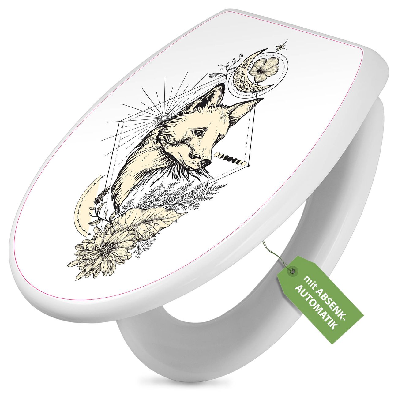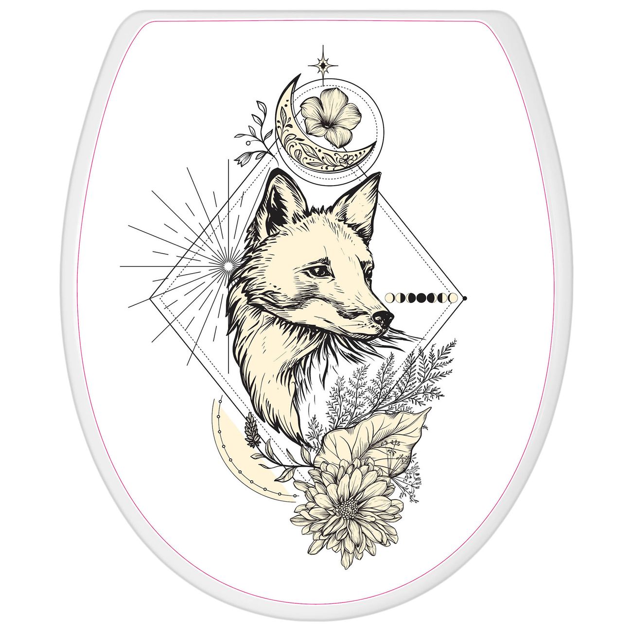 Toilettendeckel weiß mit Absenkautomatik Motiv Mystischer Fuchs