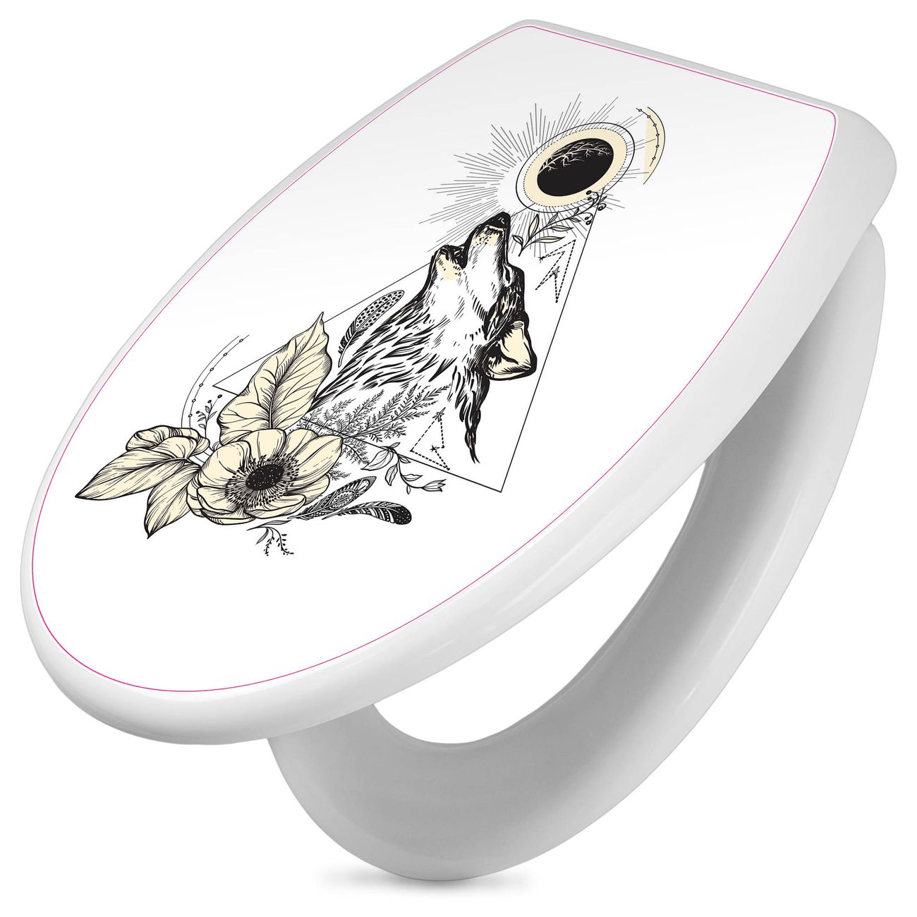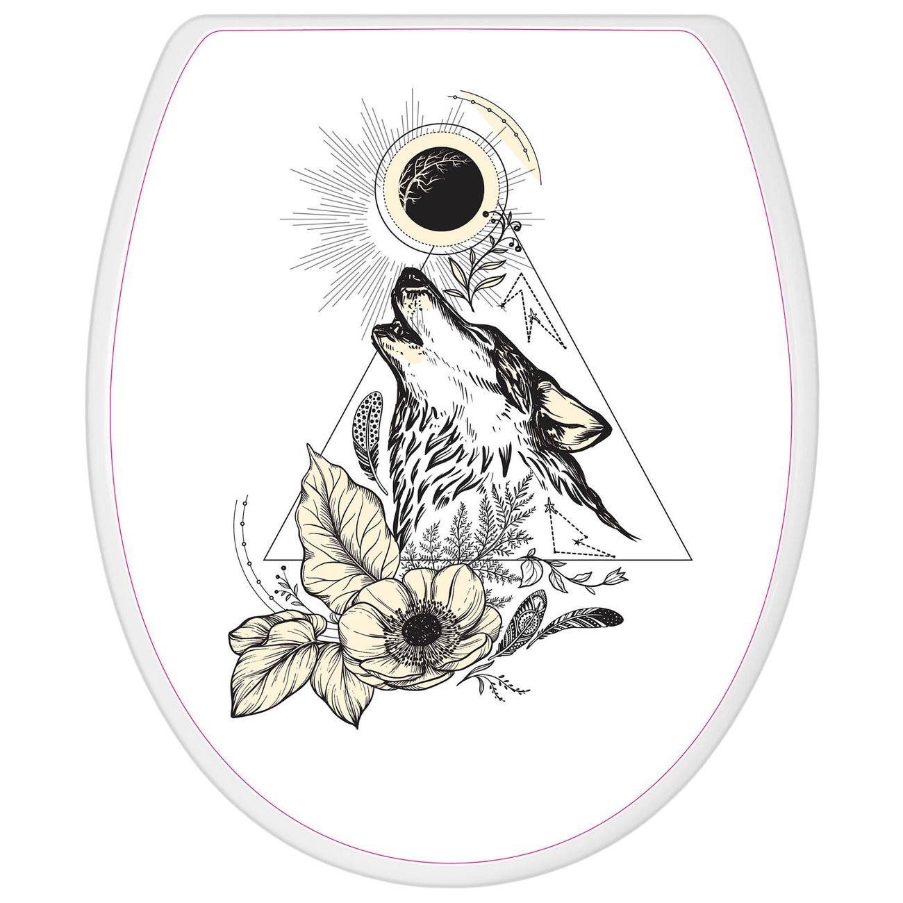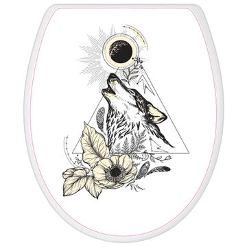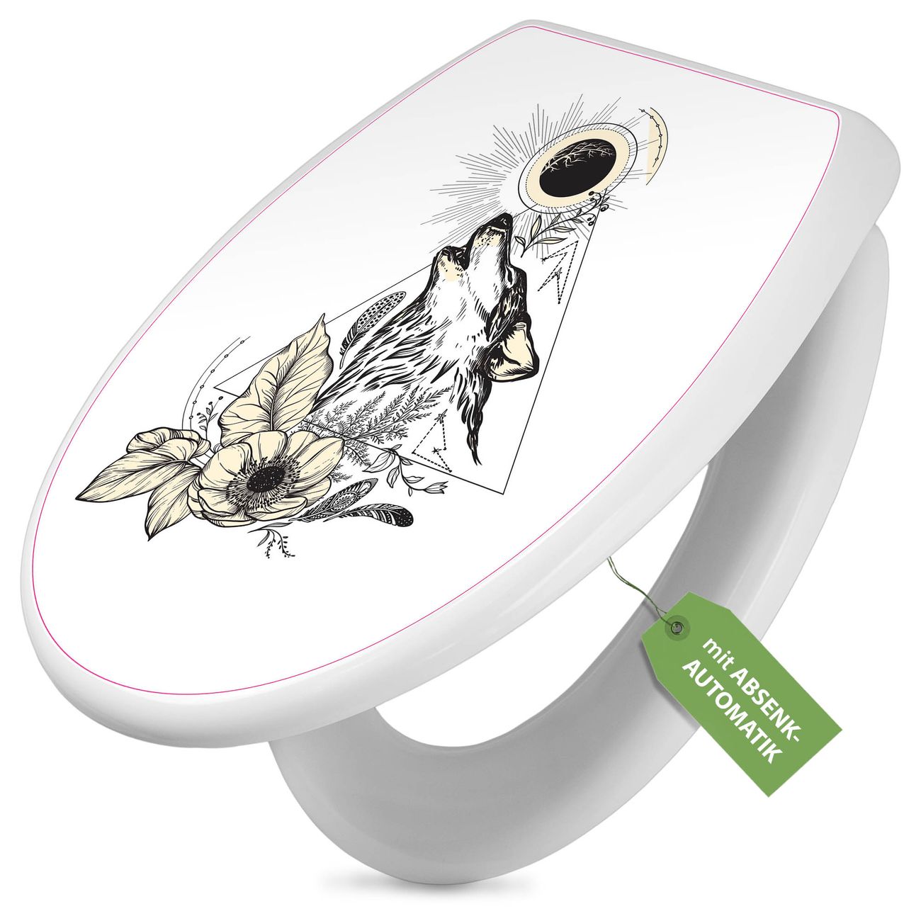 Toilettendeckel weiß mit Absenkautomatik Motiv Mystischer Wolf