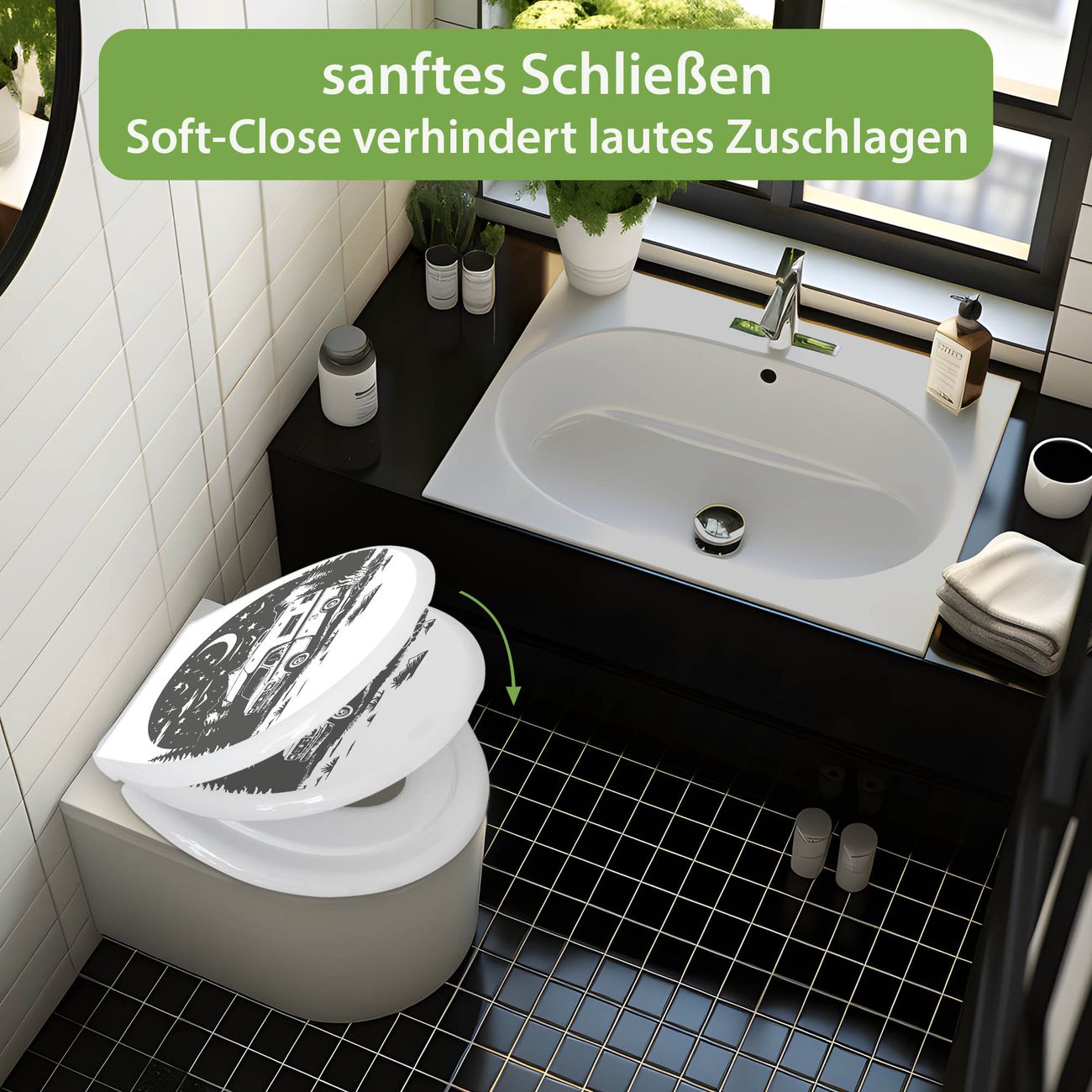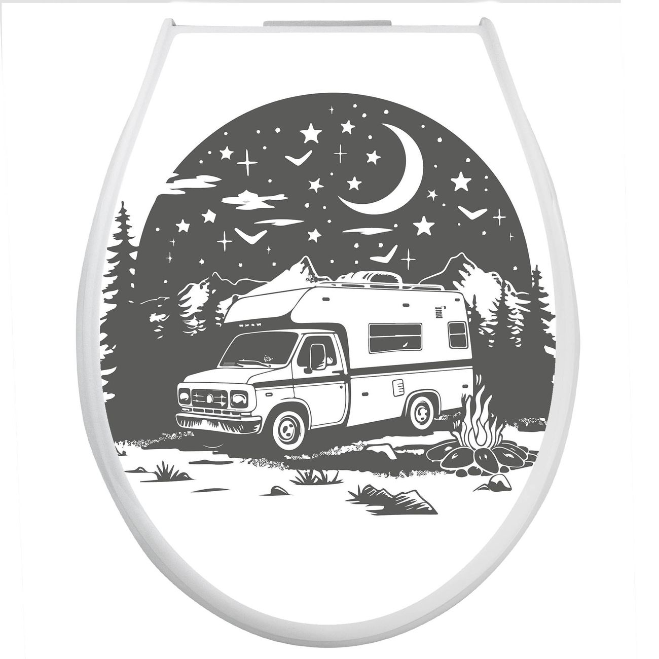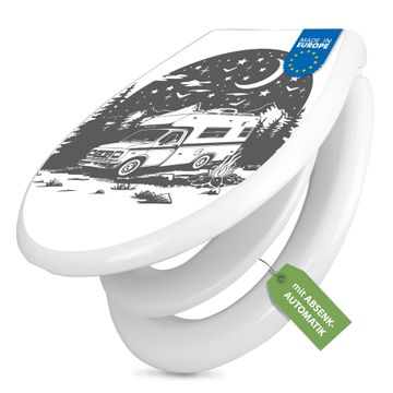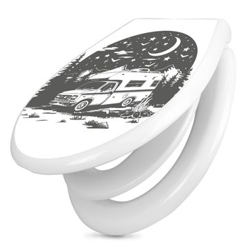 Toilettendeckel weiß mit Absenkautomatik Motiv Nächtliches Campingabenteuer