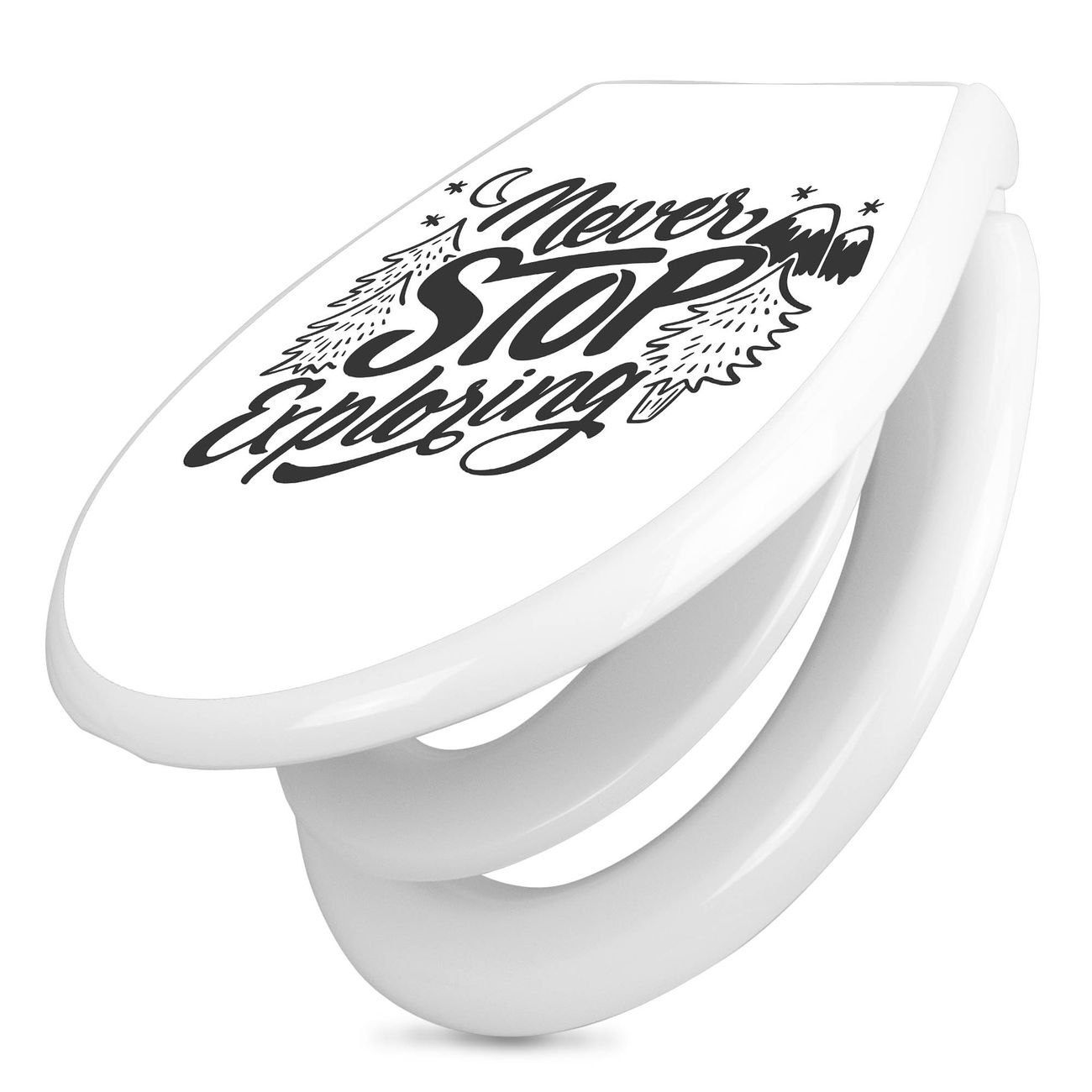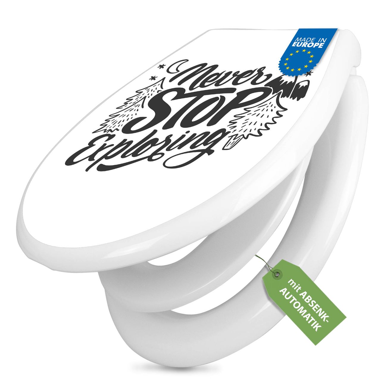 Toilettendeckel weiß mit Absenkautomatik Motiv Never stop Exploring