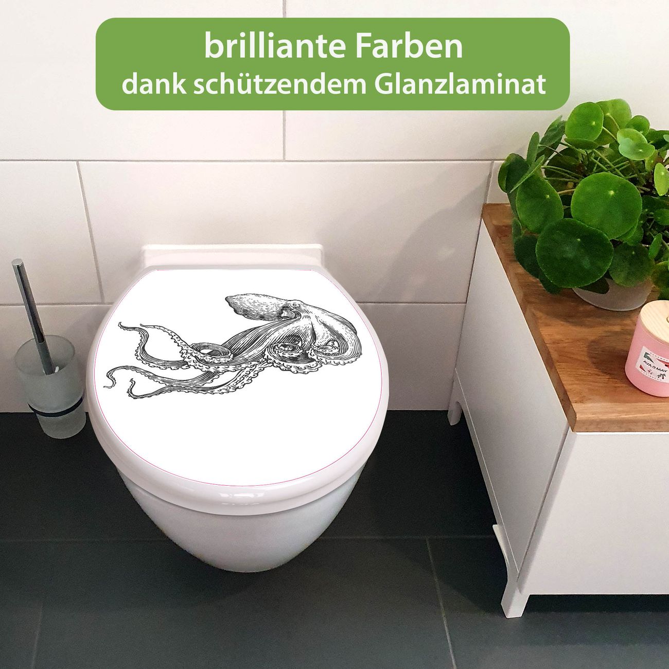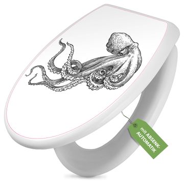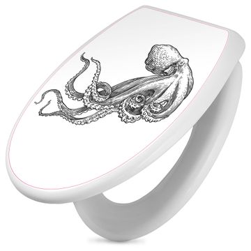 Toilettendeckel weiß mit Absenkautomatik Motiv Oktopus 6
