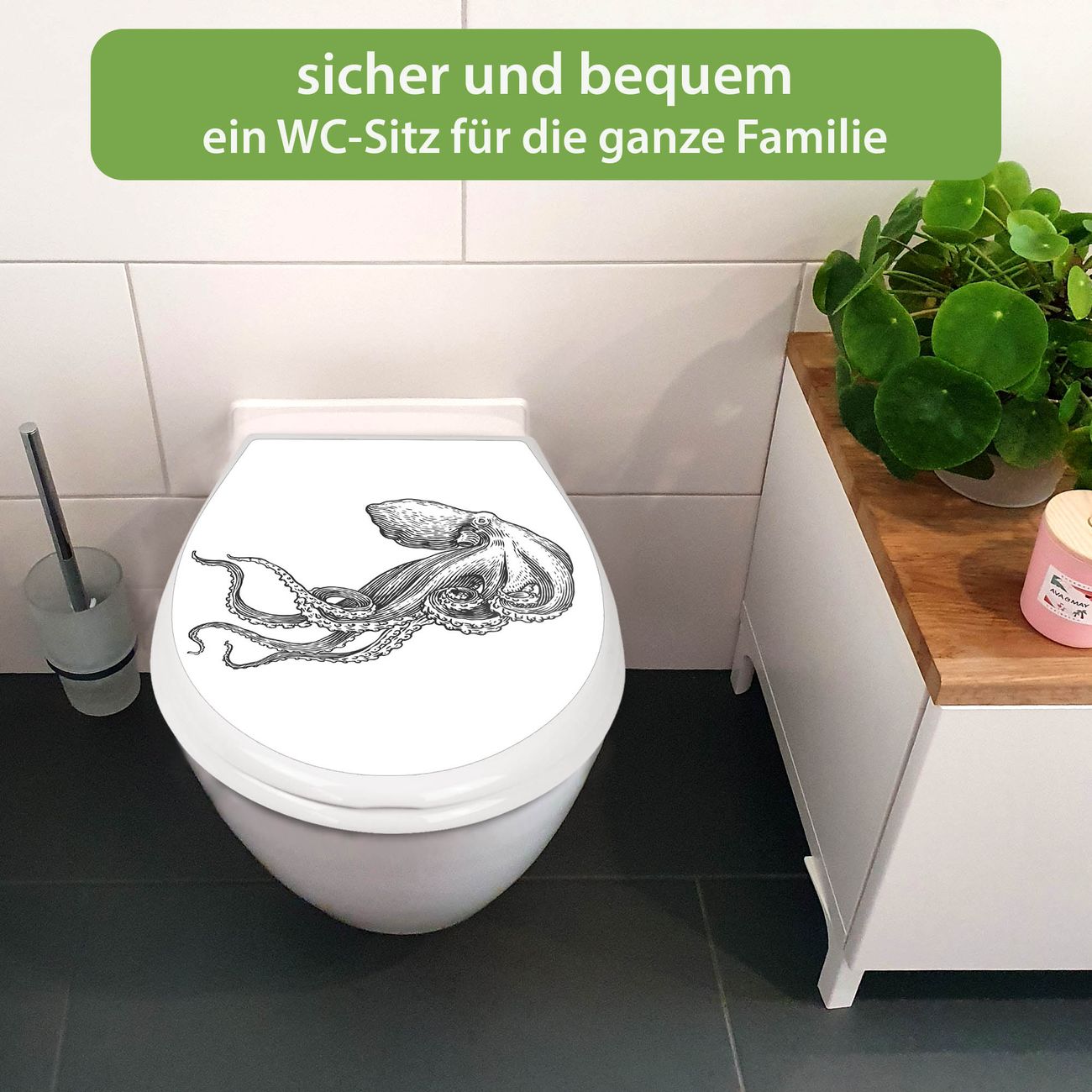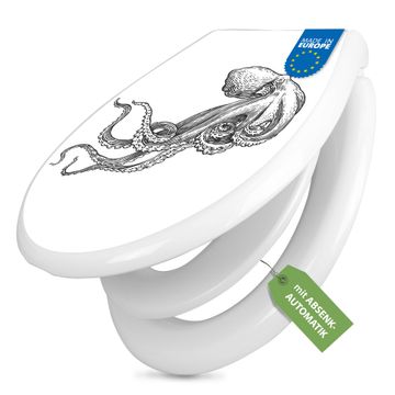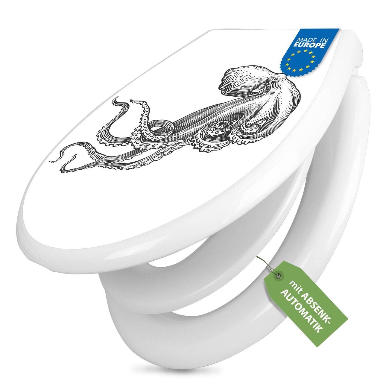 Toilettendeckel weiß mit Absenkautomatik Motiv Oktopus 6