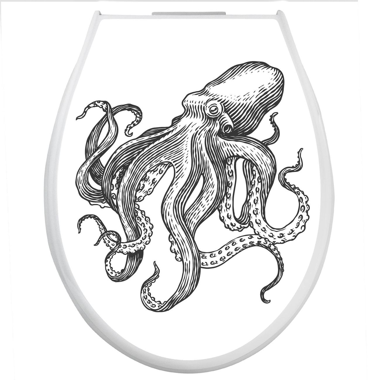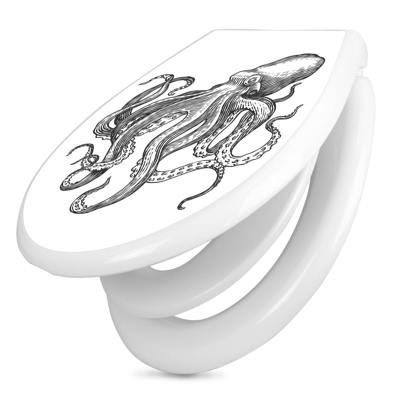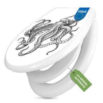 Toilettendeckel weiß mit Absenkautomatik Motiv Oktopus 9
