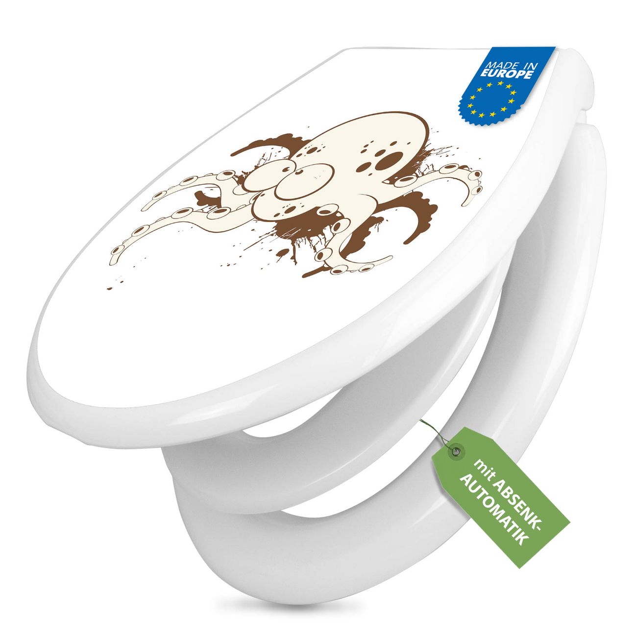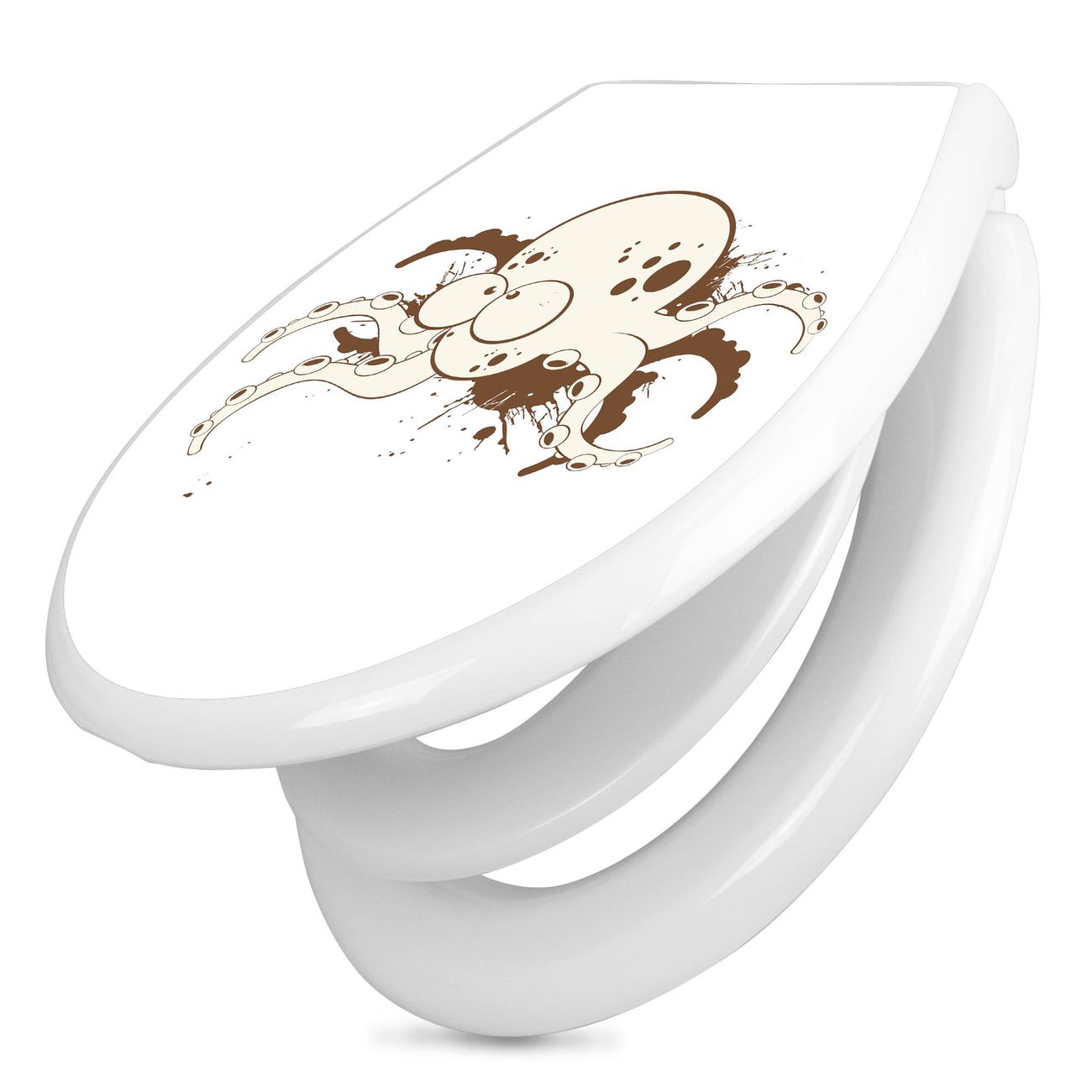 Toilettendeckel weiß mit Absenkautomatik Motiv Oktopus Comic 2