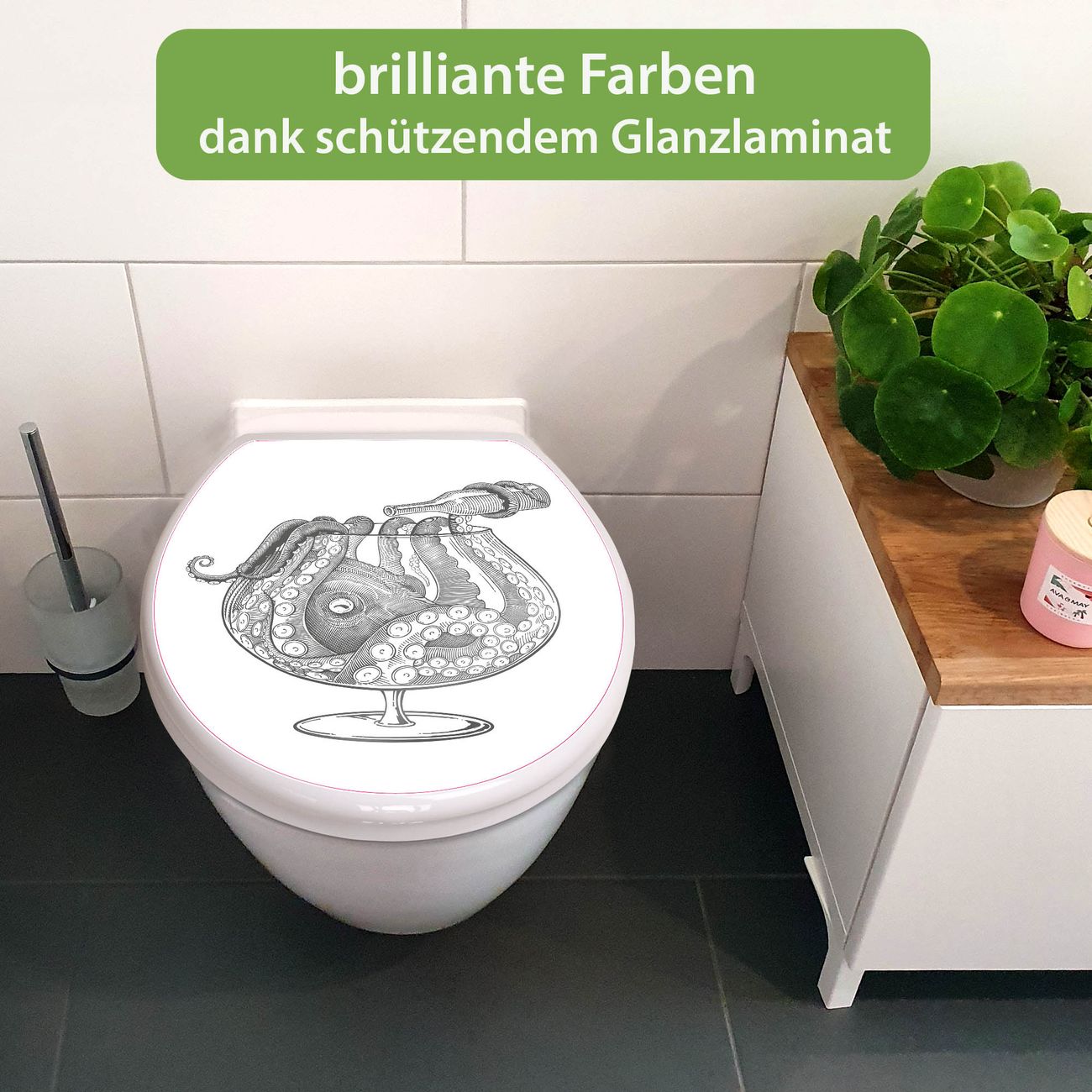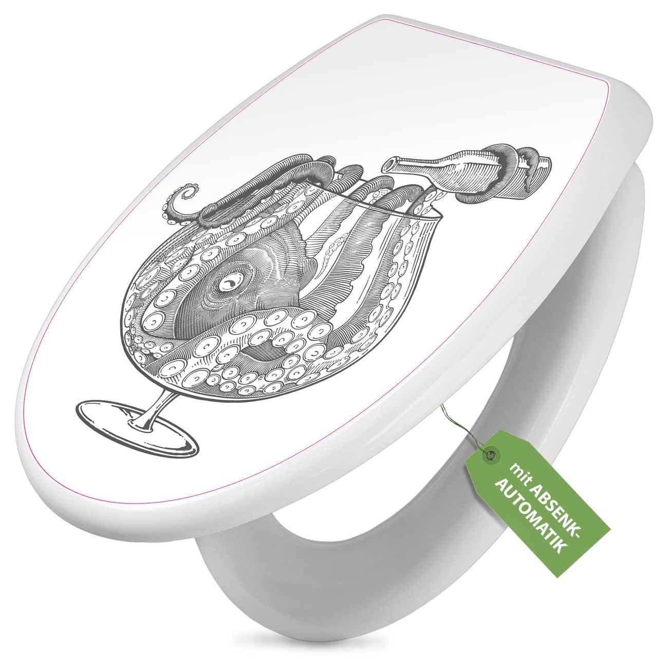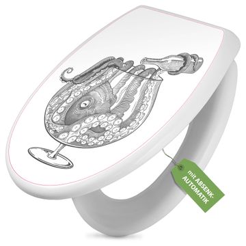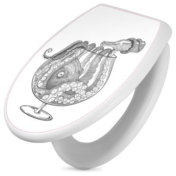 Toilettendeckel weiß mit Absenkautomatik Motiv Oktopus im Glas 2