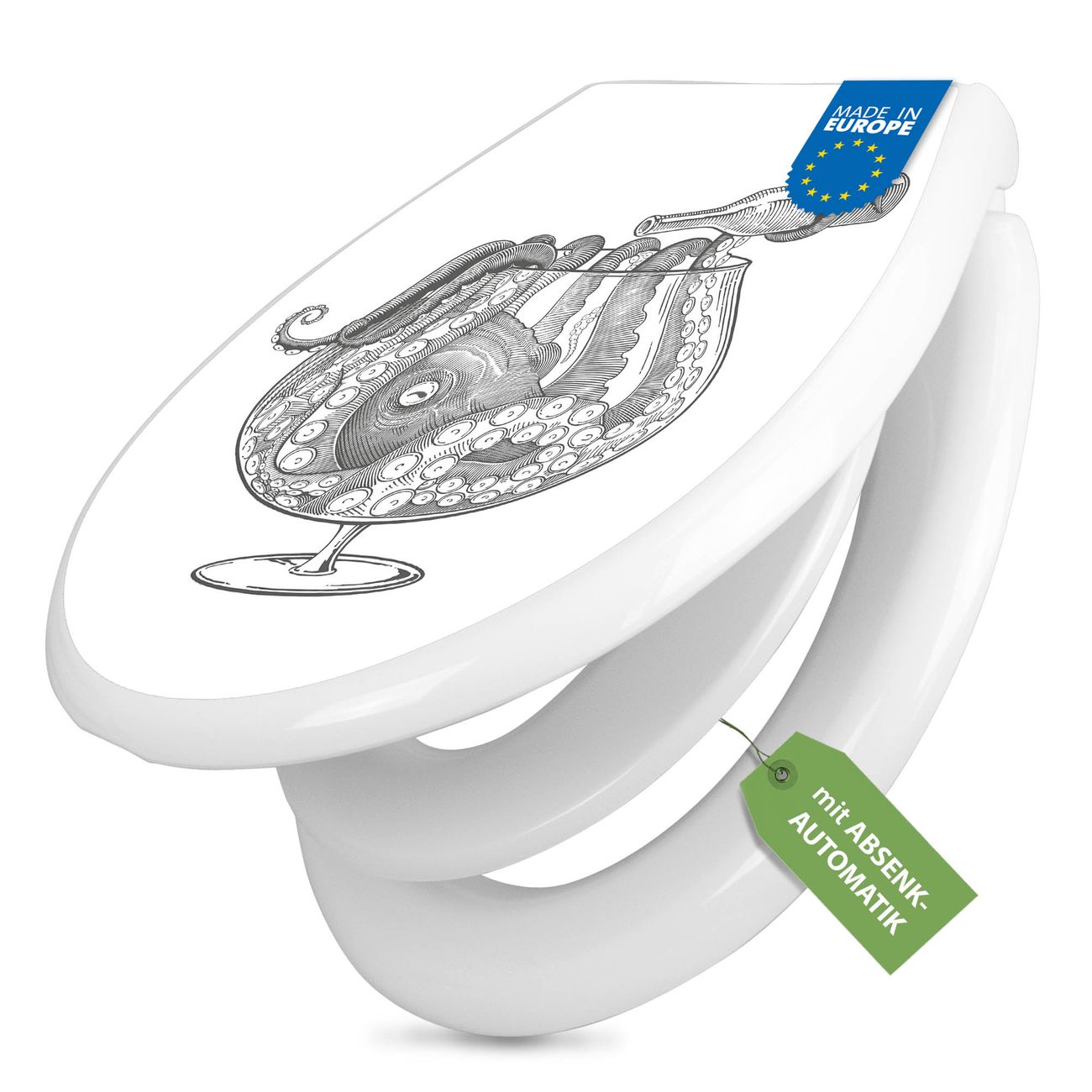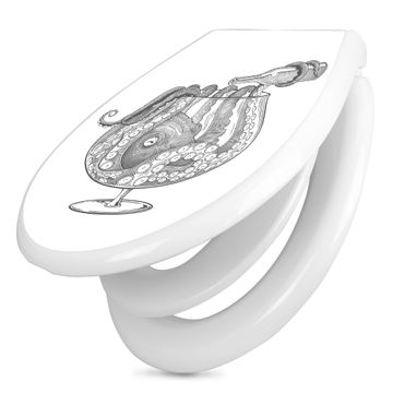 Toilettendeckel weiß mit Absenkautomatik Motiv Oktopus im Glas 2