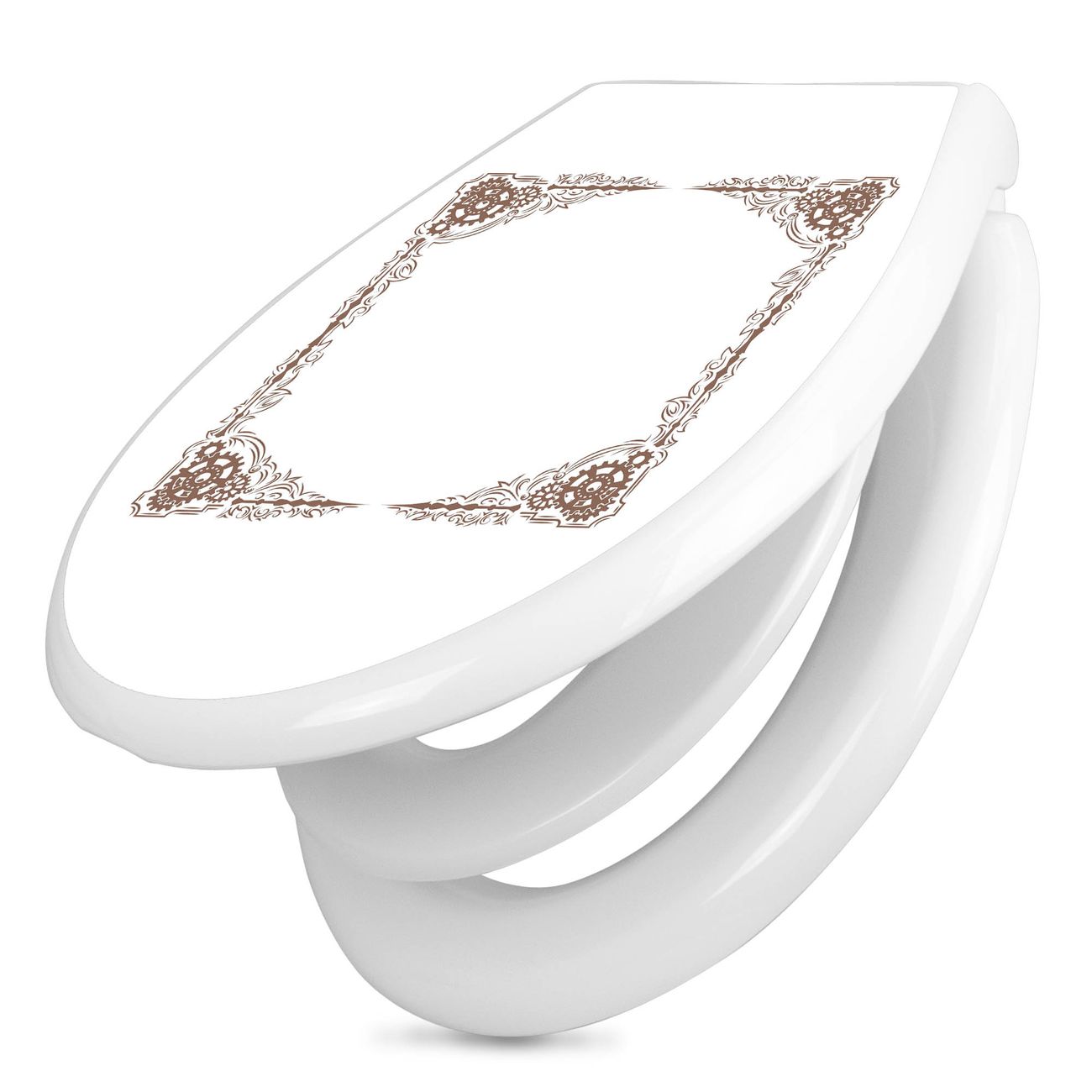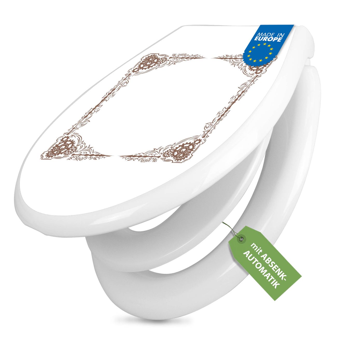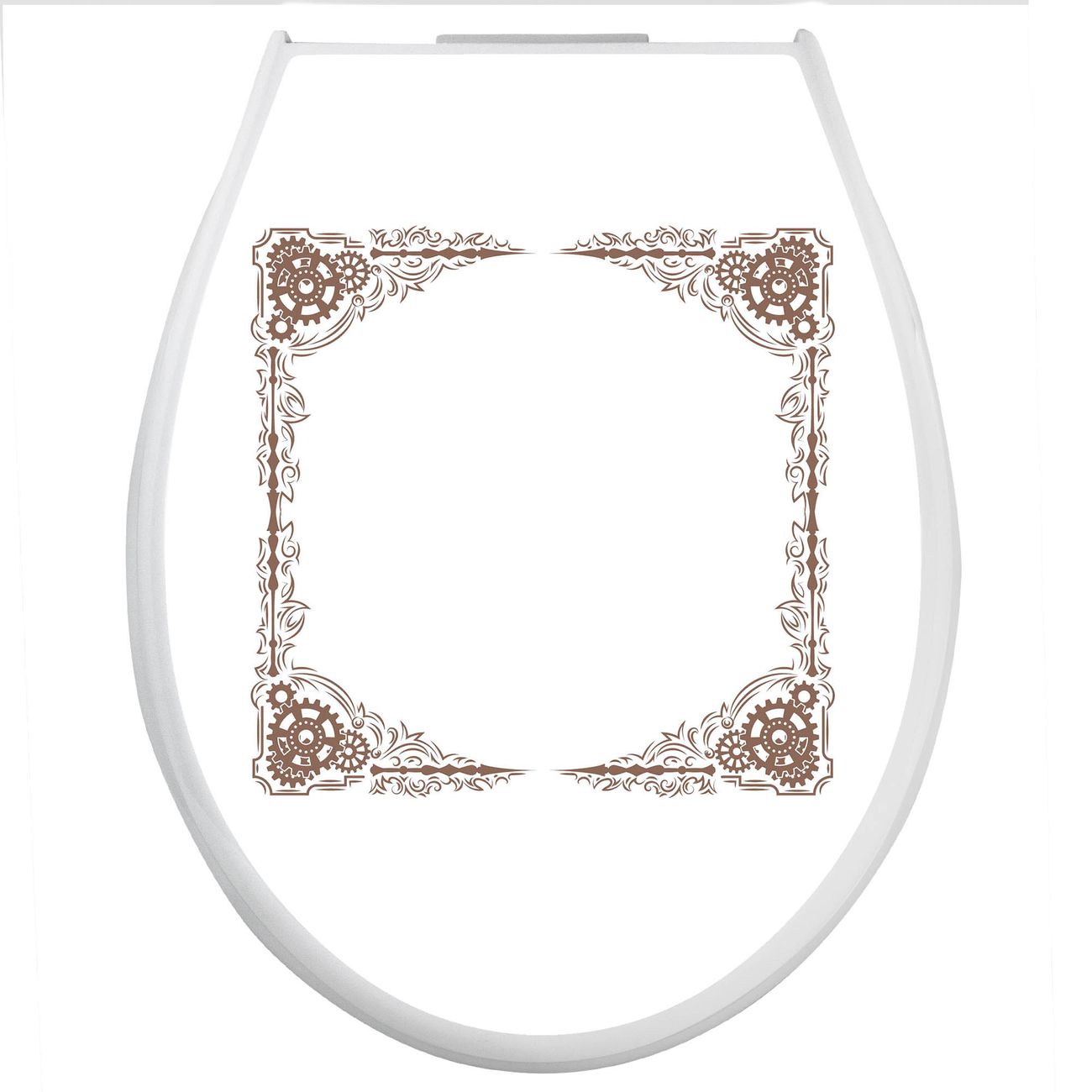 Toilettendeckel weiß mit Absenkautomatik Motiv Ornamentaler Zahnräderrahmen