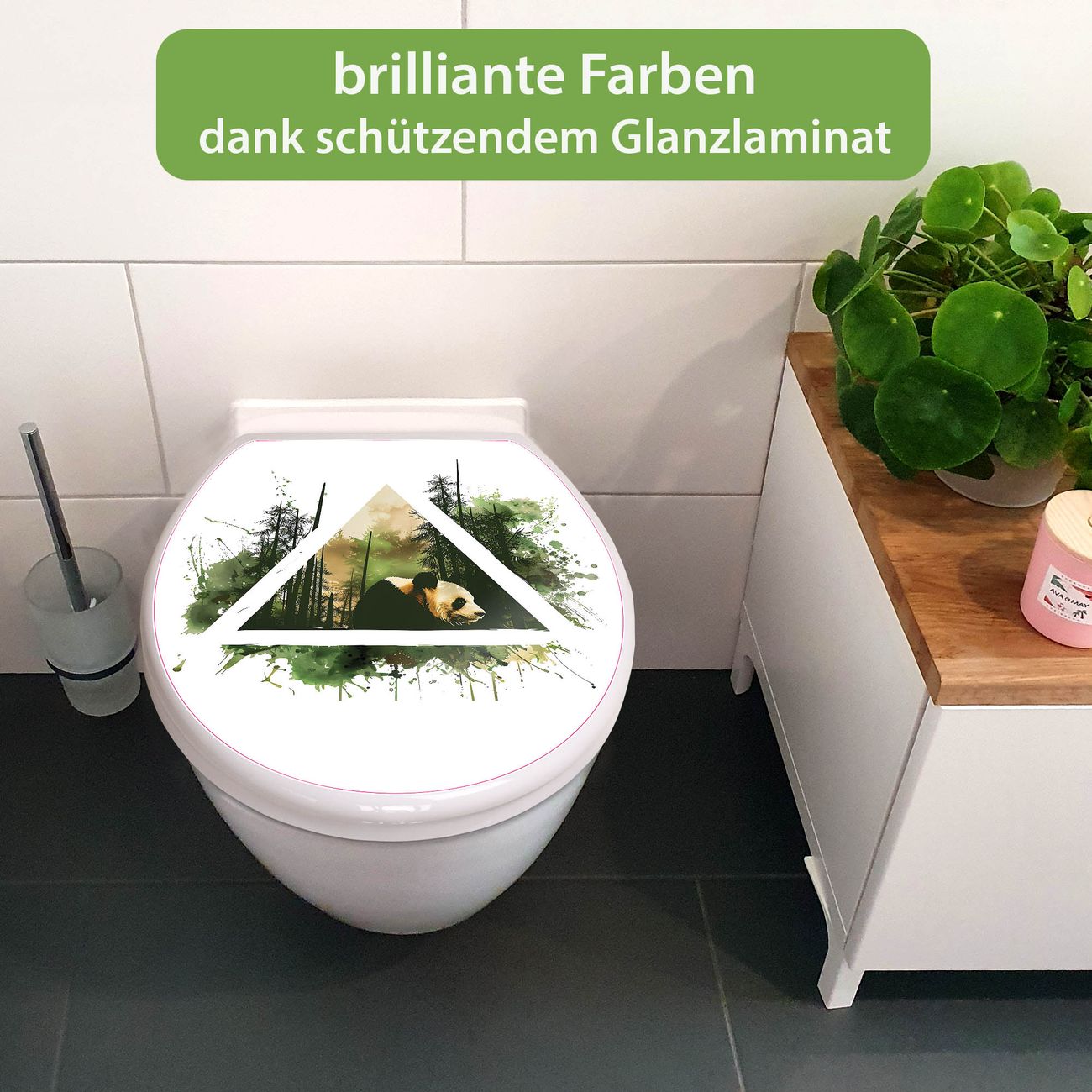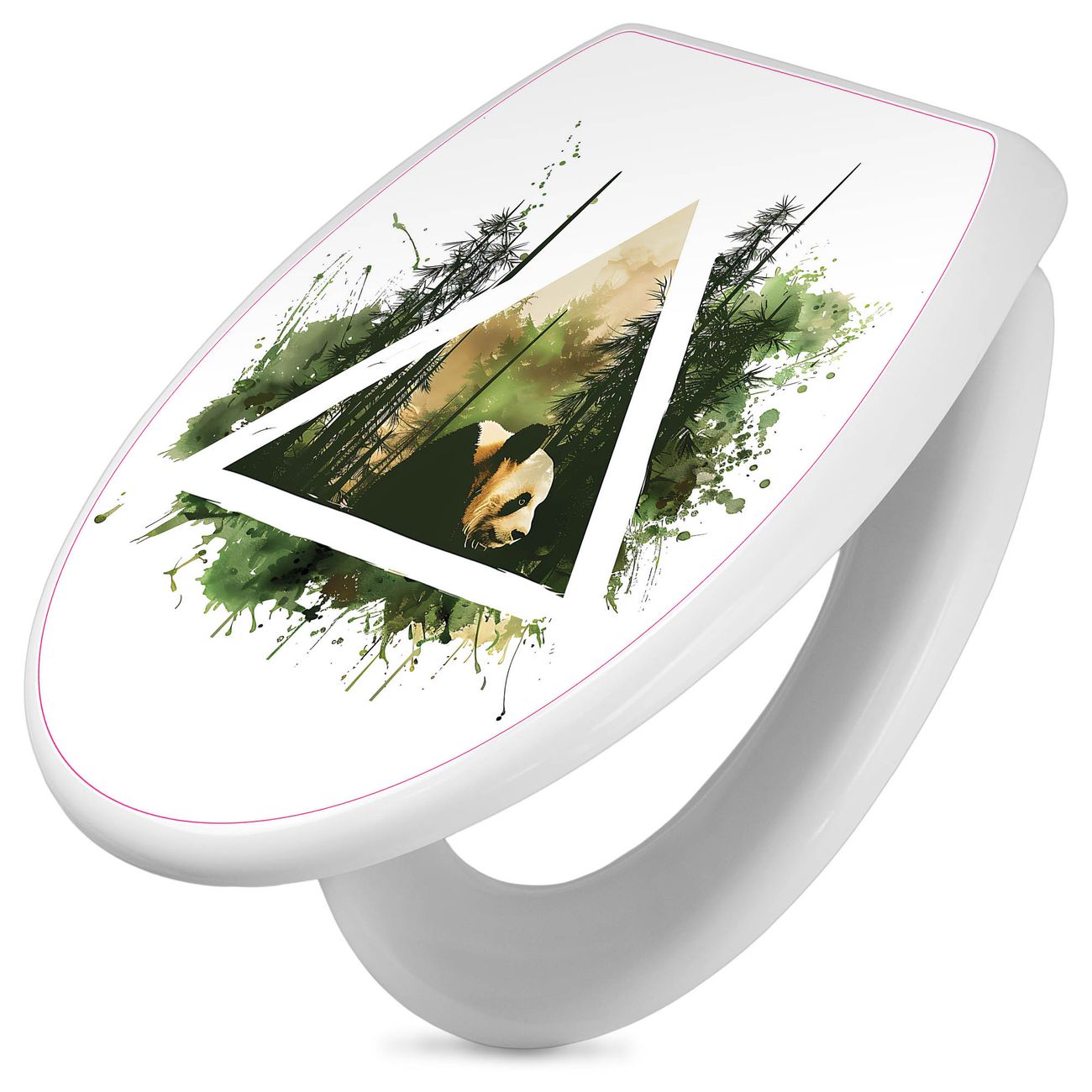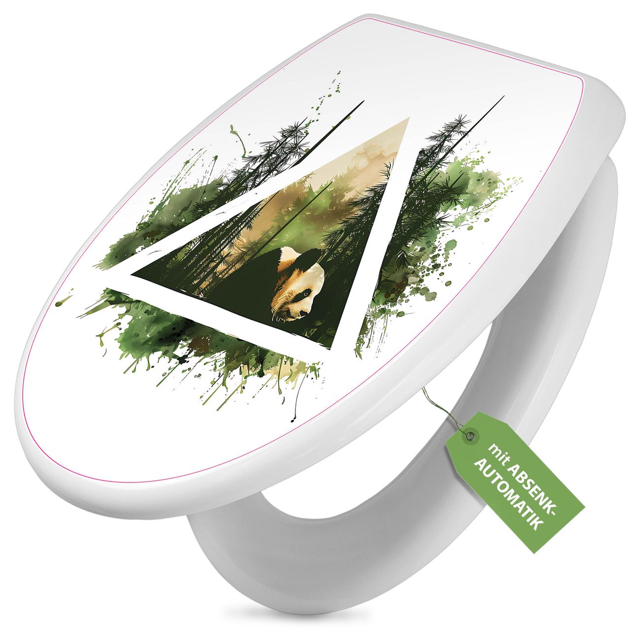 Toilettendeckel weiß mit Absenkautomatik Motiv Panda im Wald Dreieck