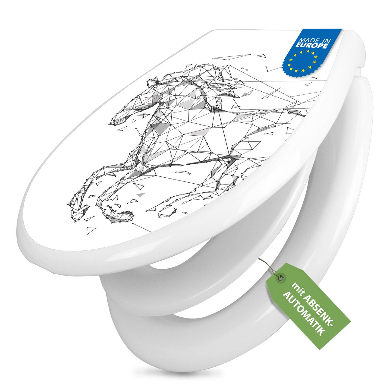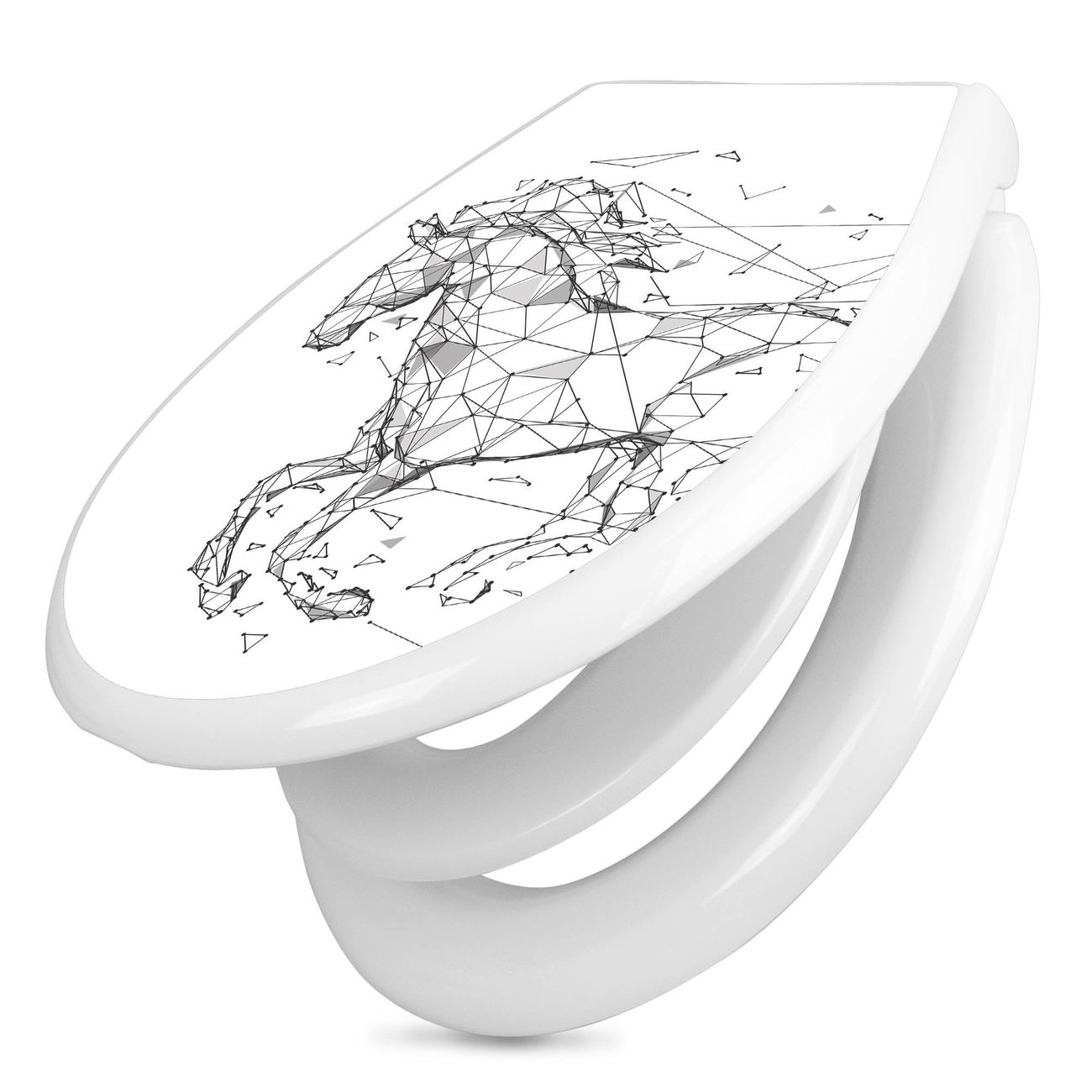 Toilettendeckel weiß mit Absenkautomatik Motiv Pferd abstrakt 2