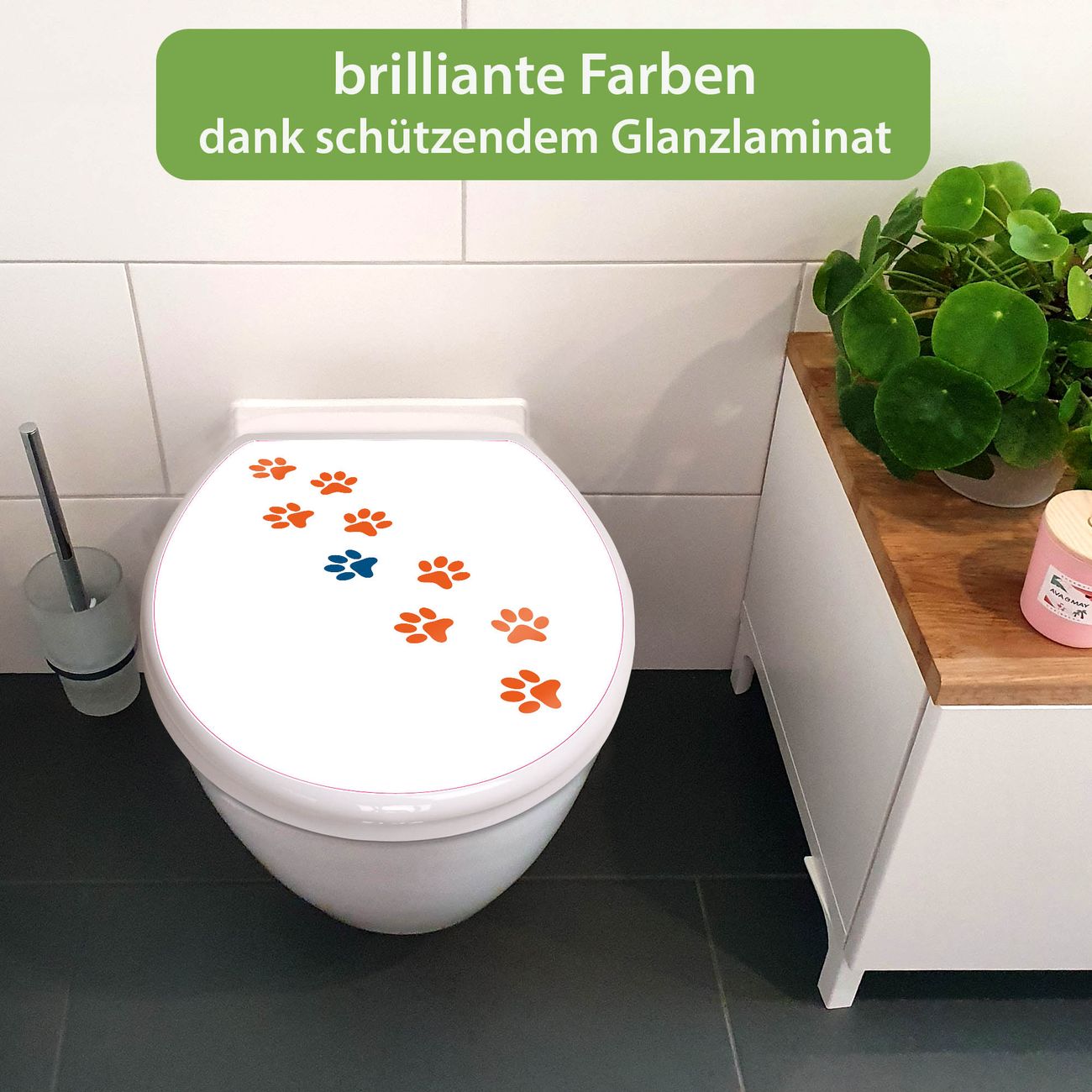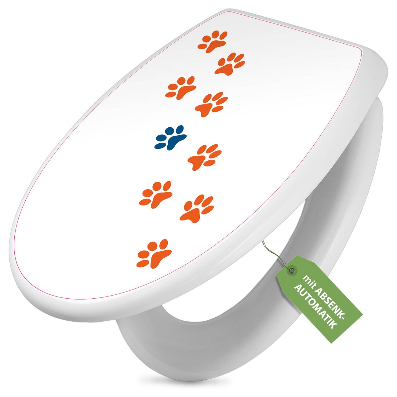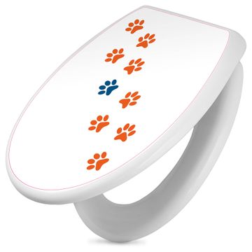 Toilettendeckel weiß mit Absenkautomatik Motiv Pfotenrahmen