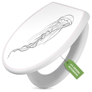 Toilettendeckel weiß mit Absenkautomatik Motiv Qualle 4