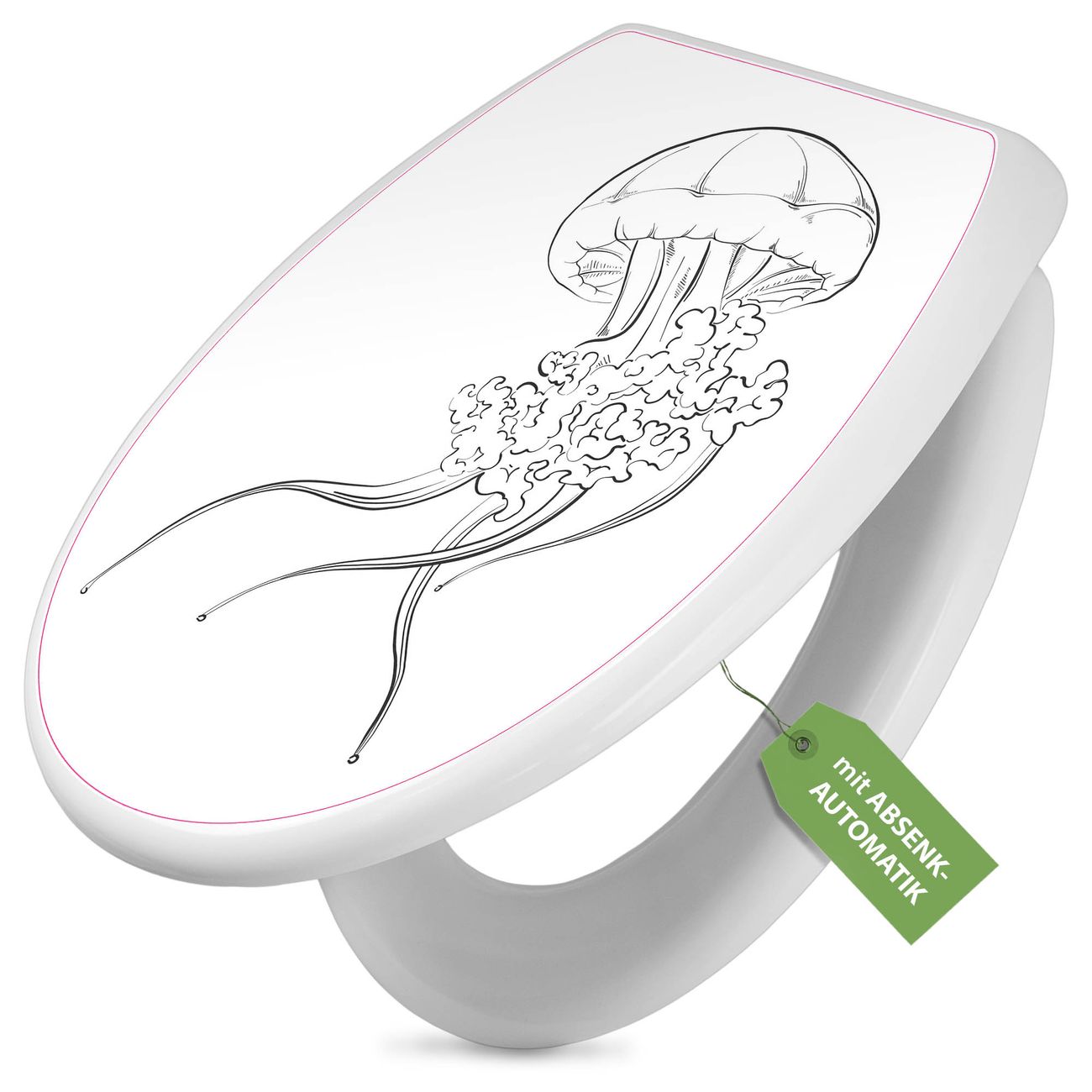 Toilettendeckel weiß mit Absenkautomatik Motiv Qualle 6