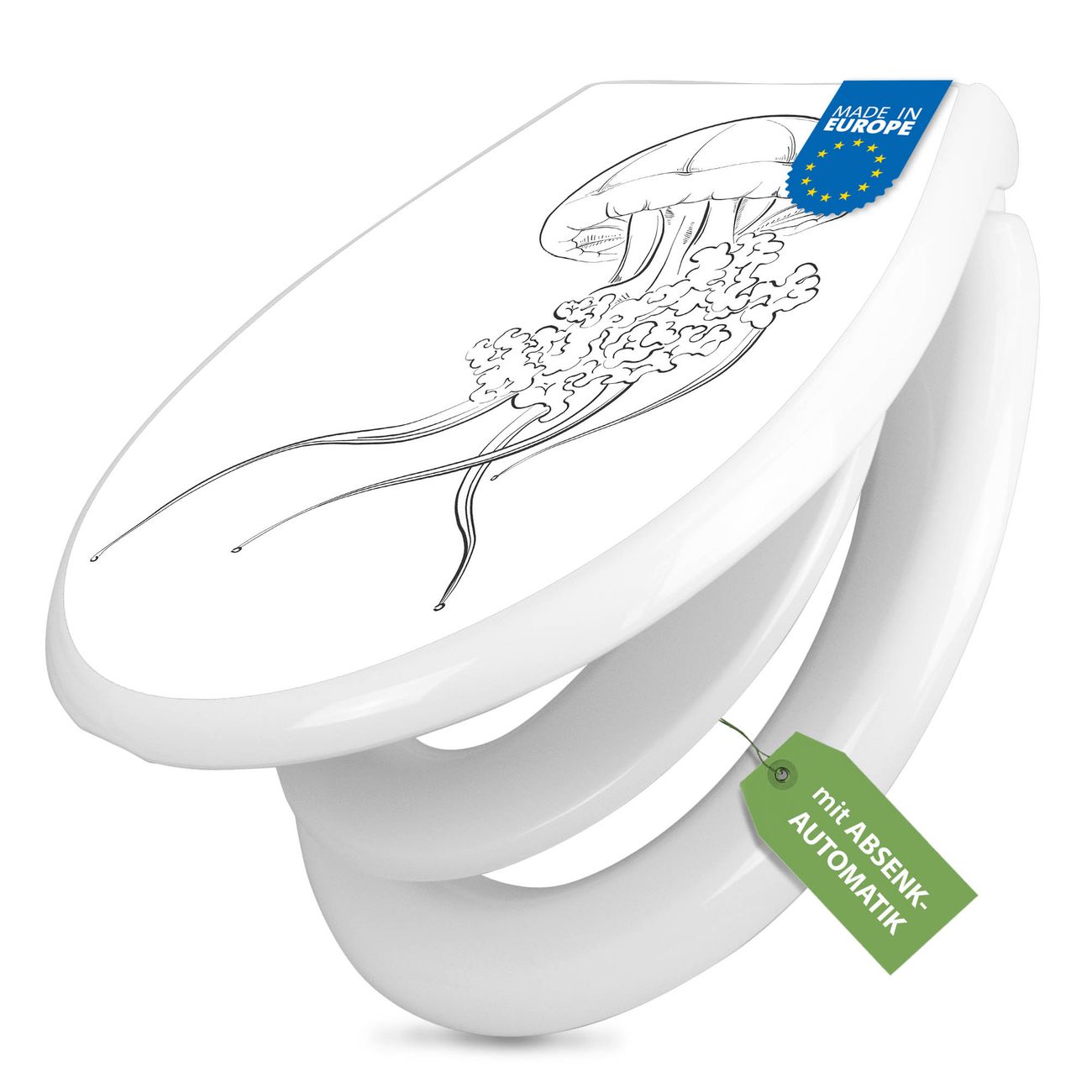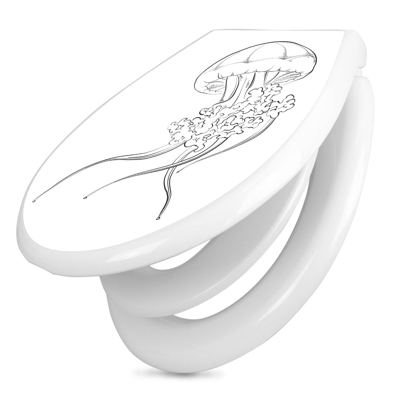 Toilettendeckel weiß mit Absenkautomatik Motiv Qualle 6