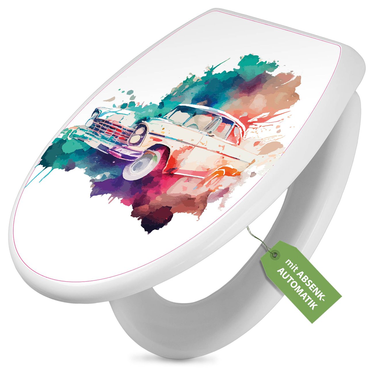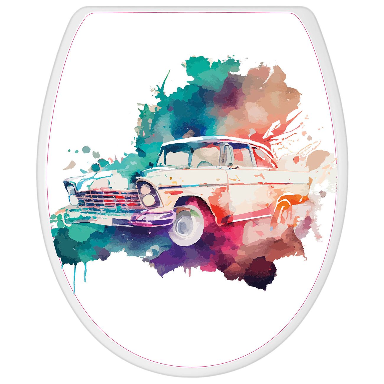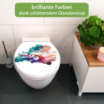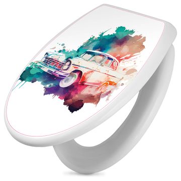 Toilettendeckel weiß mit Absenkautomatik Motiv Retro-Auto Aquarell